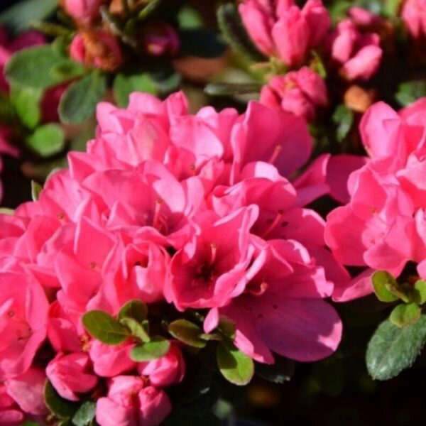 Azalia japońska ‘Diamond Zamelrose’ to niski, zwarty krzew dorastający po 10 latach do około 40 cm wysokości i 60 cm szerokości. Kwitnie obficie i corocznie w maju i czerwcu.