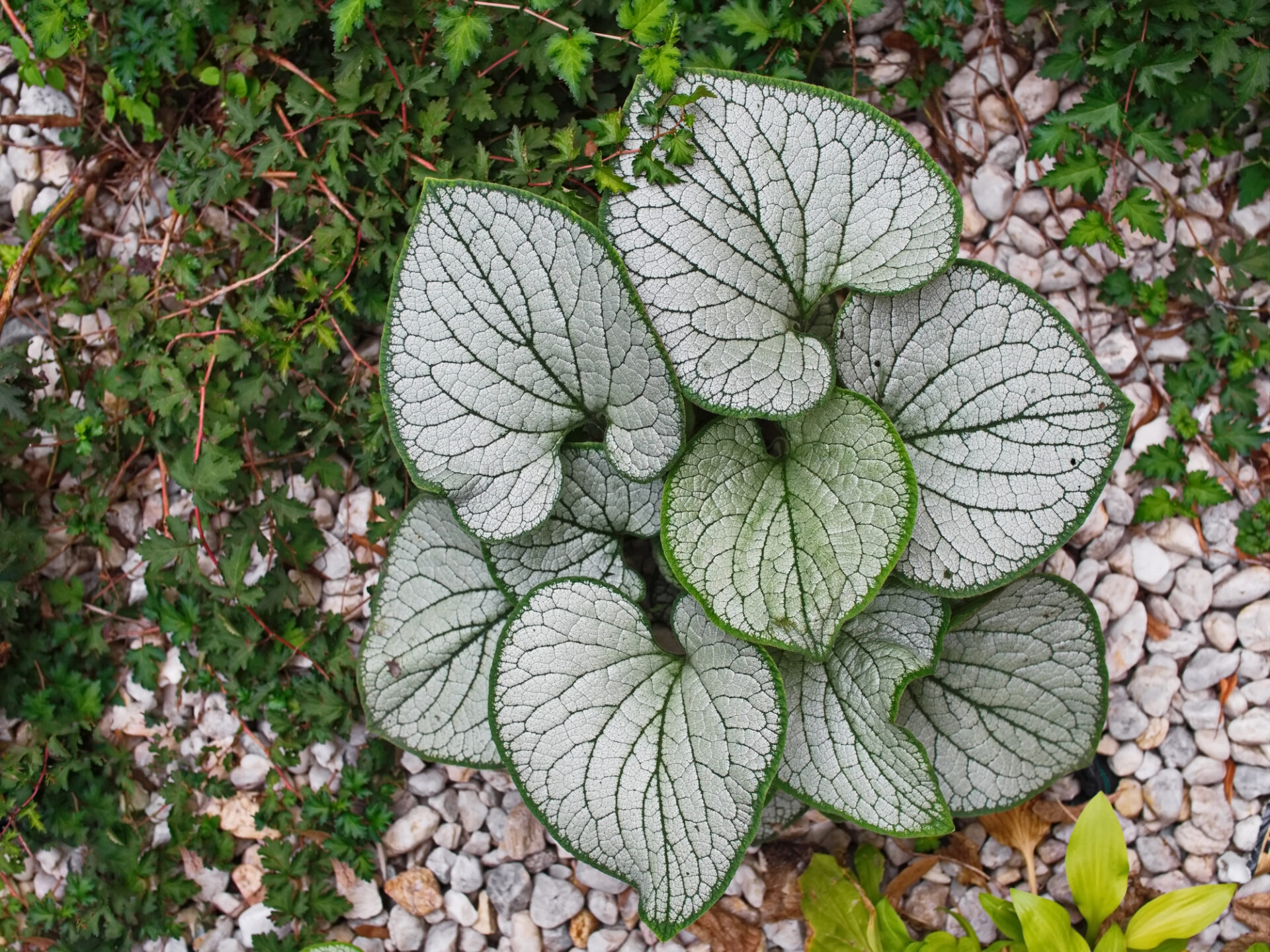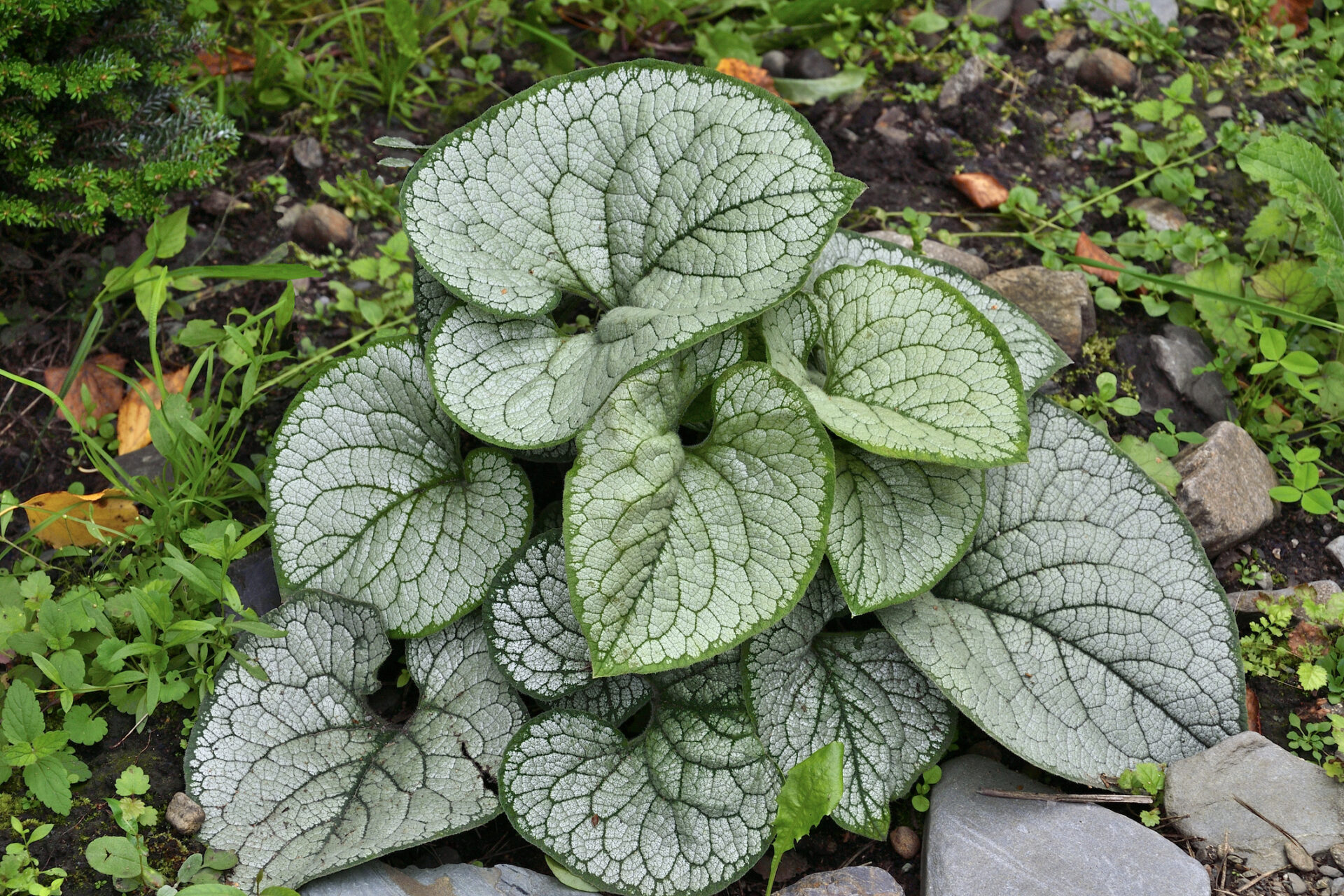 Brunnera wielkolistna ‘Silver Heart’ to roślina, która zachwyca nie tylko swoim pokrojem, ale także dekoracyjnym, srebrzystym ulistnieniem. Pochodząca z odmiany ‘Looking Glass’, ta brunnera jest uważana za jedną z najodporniejszych, charakteryzującą się znaczną tolerancją na słońce. Tworzy bujne kępy, osiągające maksymalnie 30-45 cm wysokości i 35 cm szerokości. Roślina wyróżnia się dużymi, grubymi, szorstkimi w dotyku liśćmi o sercowatym kształcie. Ich srebrzysta powierzchnia, pokryta drobnymi włoskami, zdobi ciemnozielone unerwienie, a wąski, ciemnozielony margines brzegów podkreśla elegancję liści. Brunnera ‘Silver Heart’ kwitnie obficie od kwietnia do maja, prezentując jasnoniebieskie kwiaty, przypominające niezapominajki.Warunki uprawy:Brunnera wielkolistna ‘Silver Heart’ jest rośliną odporną na mrozy. Wymaga żyznych, próchniczych i wilgotnych gleb oraz stanowisk cienistych, osłoniętych od bezpośredniego nasłonecznienia. Latem zaleca się regularne podlewanie, a w okresie wzrostu roślinę warto nawozić. Jest doskonała do zastosowania w cienistych rabatach, obwódkach, pojemnikach czy na brzegach zbiorników wodnych.Zastosowanie:Brunnera wielkolistna ‘Silver Heart’ stanowi niezwykłą ozdobę rabat, podkreślając swoją elegancją obszary cieniste. Doskonale komponuje się z innymi roślinami, takimi jak funkia, paproć, żurawki czy epimedium. Jej srebrzyste liście stanowią atrakcyjny element ogrodowych kompozycji, a kwitnące gałązki dodają uroku ogrodowi. Może być również używana jako roślina okrywowa, tworząc efektowne dywany roślinne w cienistych zakątkach ogrodu. Brunnera ‘Silver Heart’ sprawdzi się zarówno w ogrodach przydomowych, jak i większych kompozycjach krajobrazowych.