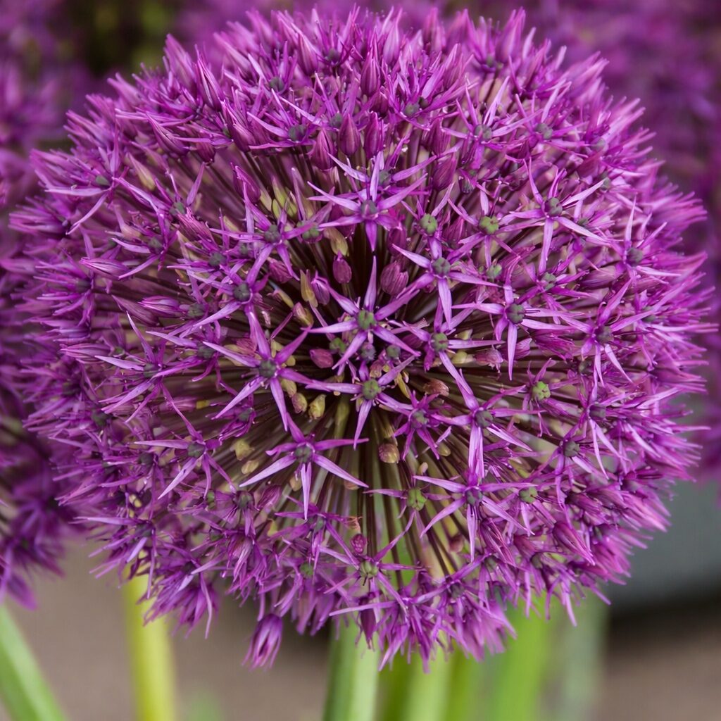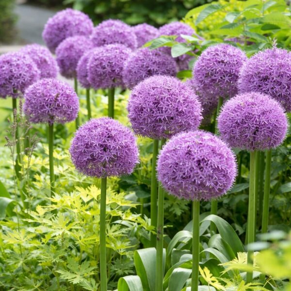 Odmiana wyróżnia się okazałymi, kulistymi kwiatostanami o średnicy do około 15 cm, o lawendowo-fioletowej, fiołkowo-fioletowej barwie. Kwiatostany mają luźniejszą, ażurową budowę, co nadaje im lekkości i elegancji. Osadzone są na wysokich, solidnych pędach, dzięki czemu dobrze eksponują się ponad innymi roślinami. Czosnek ‘Universe’ efektownie prezentuje się jako soliter, a także sadzony po kilka sztuk wśród bylin, tworząc wyraziste kompozycje. Kwiaty są trwałe i doskonale nadają się jako kwiaty cięte, zarówno świeże, jak i do suszenia, chętnie wykorzystywane w kompozycjach florystycznych.