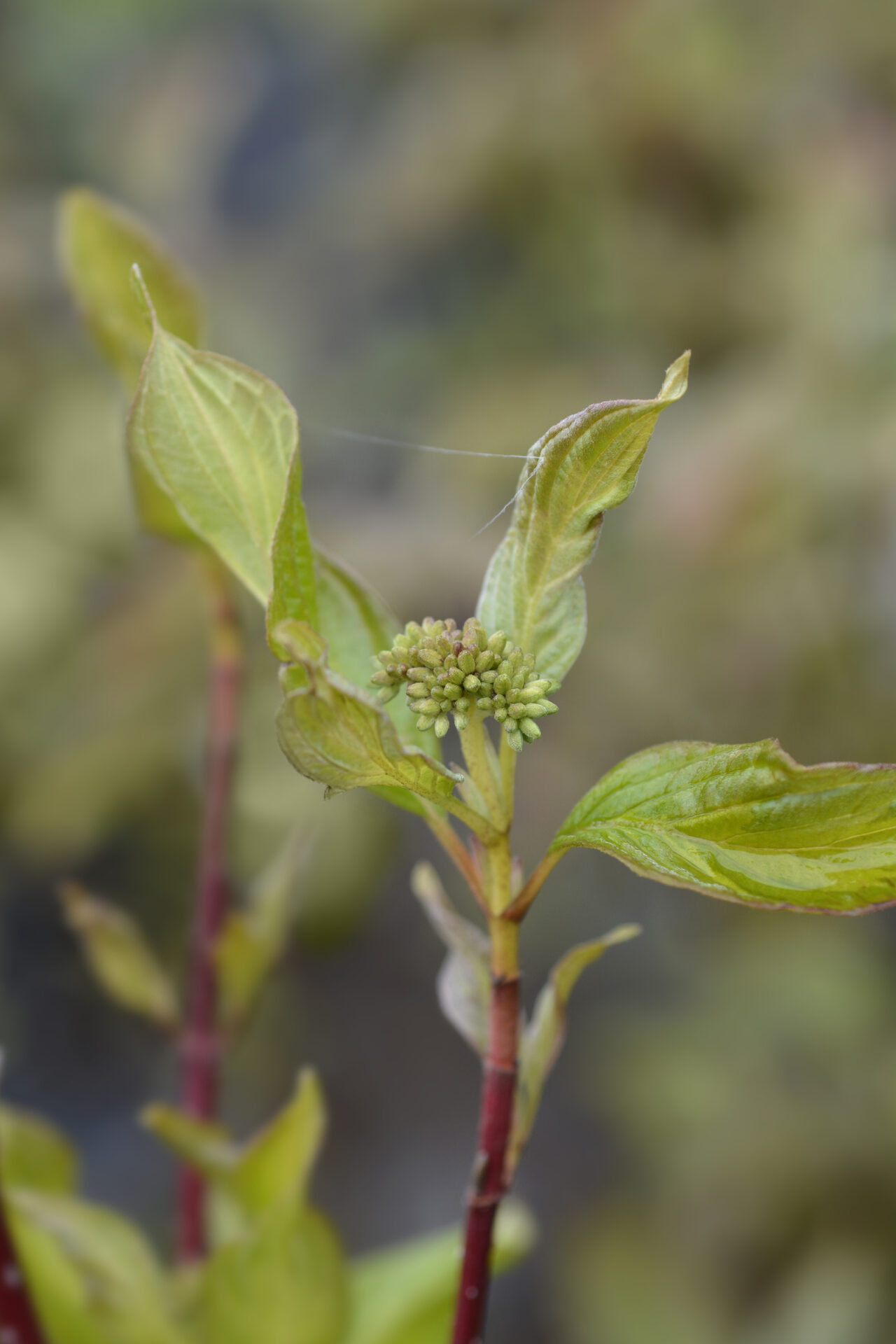Cornus alba ‘Baton Rouge’ to francuska odmiana derenia białego, charakteryzująca się eleganckim wyglądem i efektownymi detalami przez cały rok. Dorasta do wysokości od 2 do 3 metrów, a jej pionowo wzniesione pędy tworzą kulisto-rozłożystą formę krzewu. Głównym walorem ozdobnym są ciemnopurpurowe pędy, które latem przybierają intensywny kolor koralowy, tworząc malowniczy kontrast, zwłaszcza na tle białego śniegu zimą.Liście o jajowatym kształcie są zielone w sezonie, a jesienią zmieniają się w czerwono-fioletowe, dodatkowo lekko się kurczą, eksponując srebrzysty spód. Kwiaty w formie kremowych baldachów pojawiają się od czerwca do lipca, a ich miejsce jesienią zajmują dekoracyjne, czerwone owoce.Warunki uprawy:Cornus alba ‘Baton Rouge’ jest rośliną mało wymagającą. Może rosnąć na różnych glebach, ale preferuje wilgotne podłoże, dlatego regularne podlewanie jest korzystne, zwłaszcza w okresach suszy. Krzew dobrze rośnie na stanowiskach słonecznych lub półcienistych. Jest odporny na mrozy, co czyni go trwałym elementem ogrodu.Zastosowanie