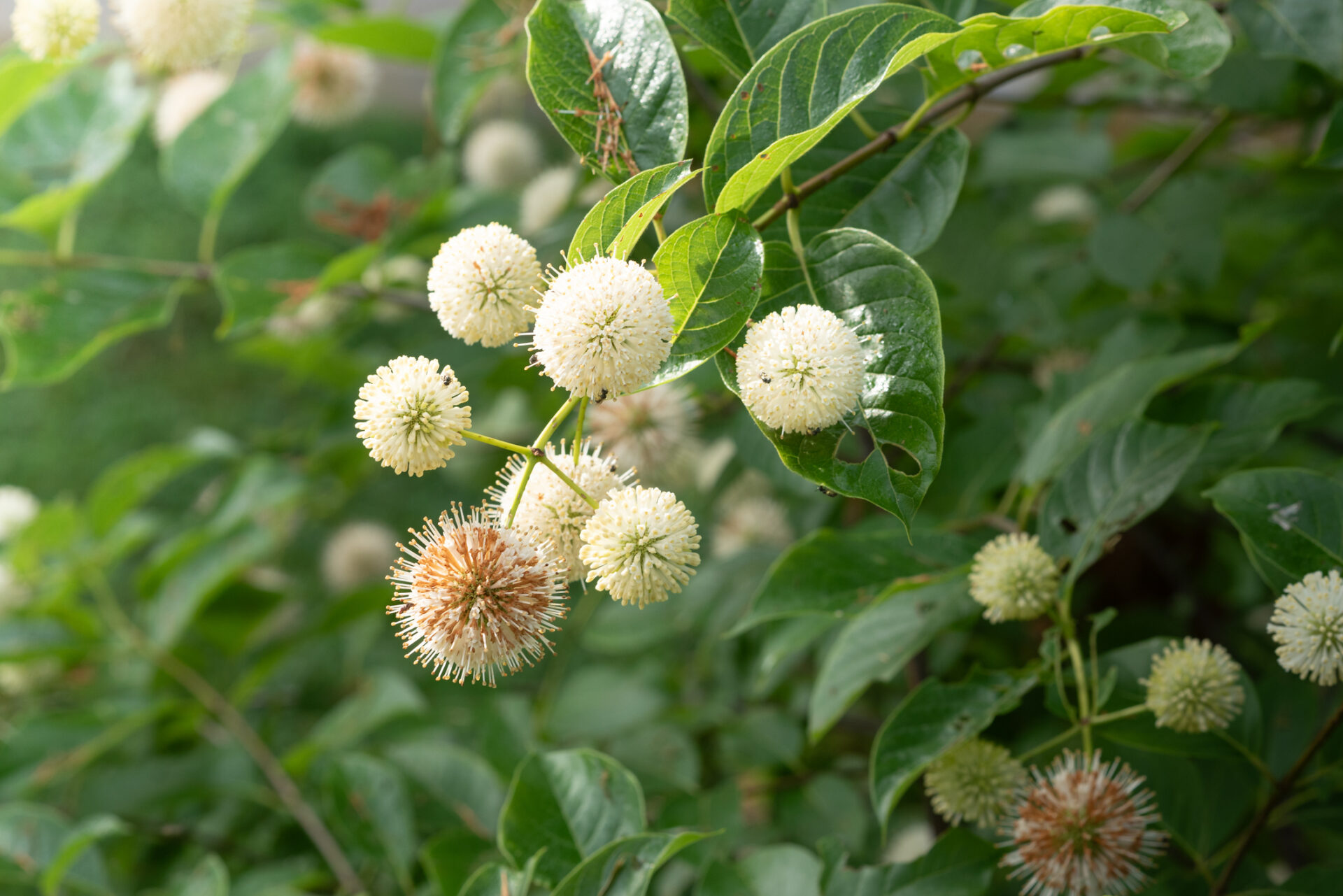 Kwiaty kremowobiałe, zebrane w kuliste, pachnące główki o średnicy do 3 cm, bardzo miododajne i chętnie odwiedzane przez pszczoły oraz motyle. Liście jasnozielone z delikatnym, srebrzystym połyskiem. Po przekwitnieniu roślinę zdobią czerwonawe owocniki. Dekoracyjna przez cały sezon, dobrze prezentuje się także posadzona nad brzegiem oczka wodnego.