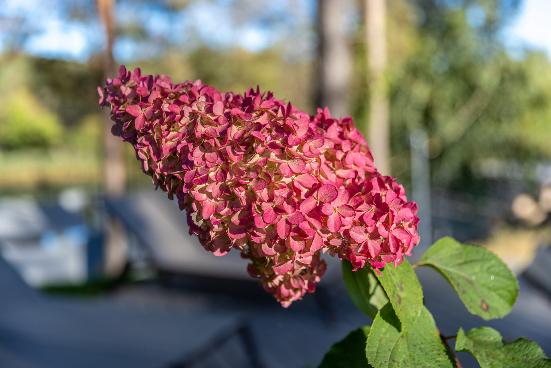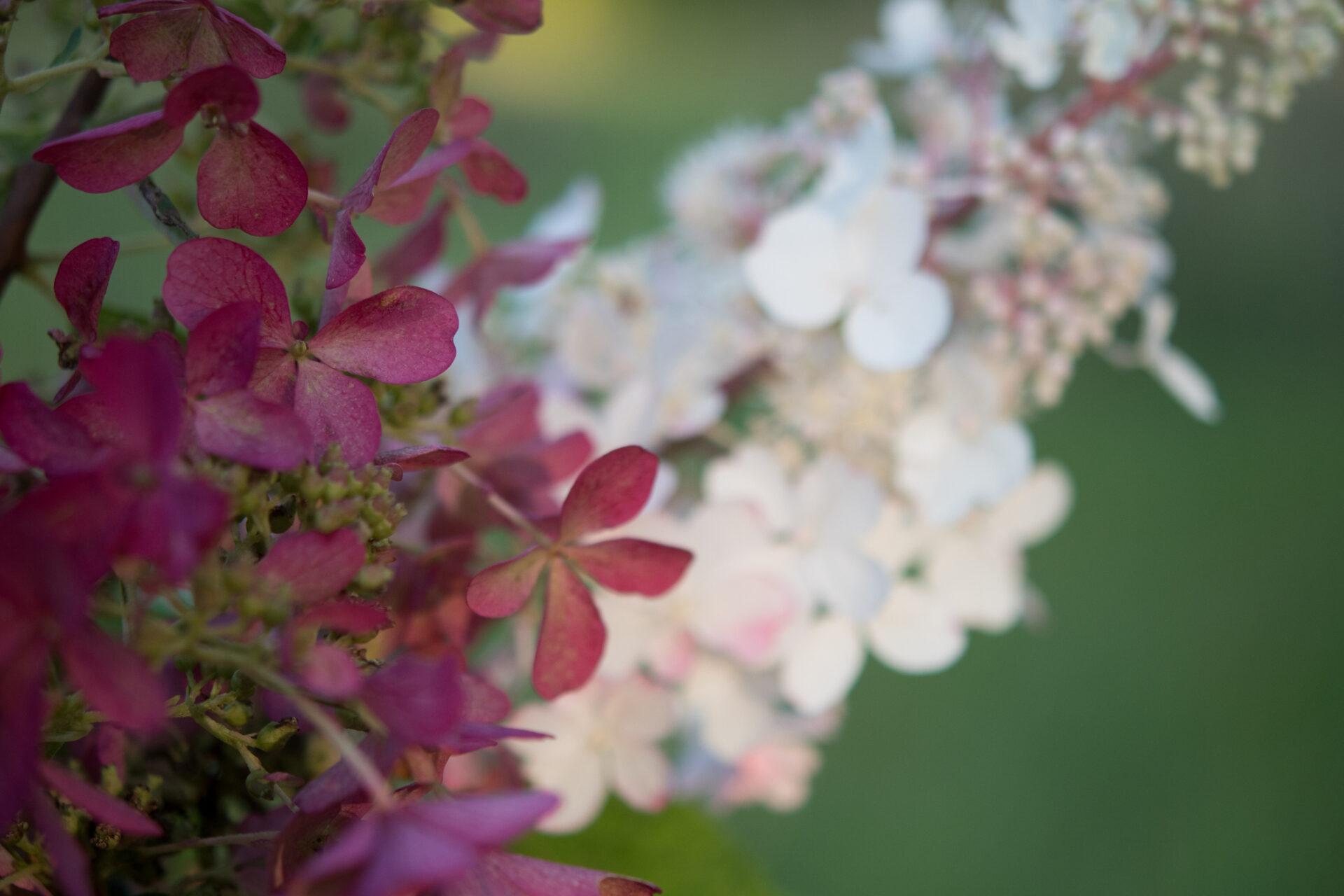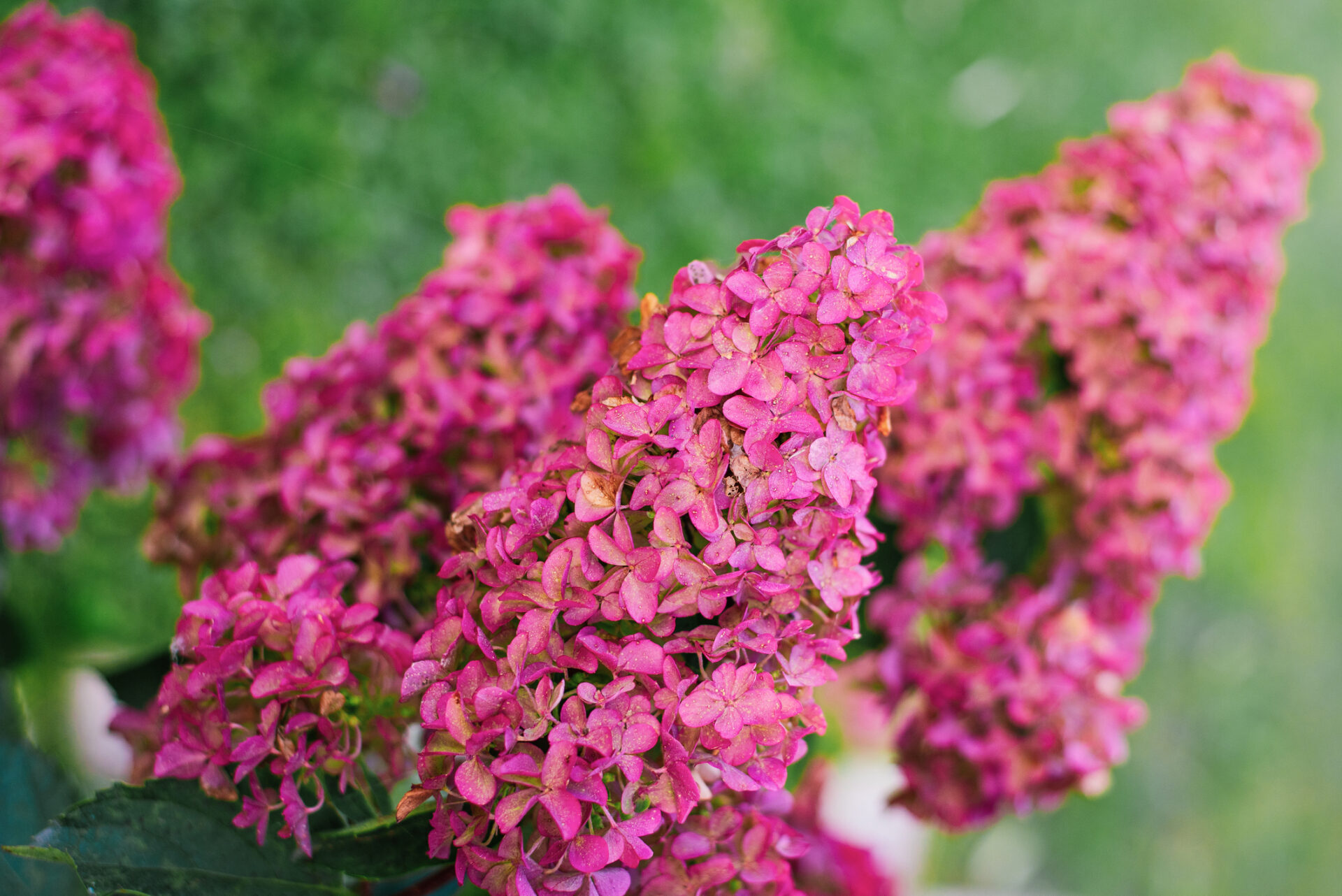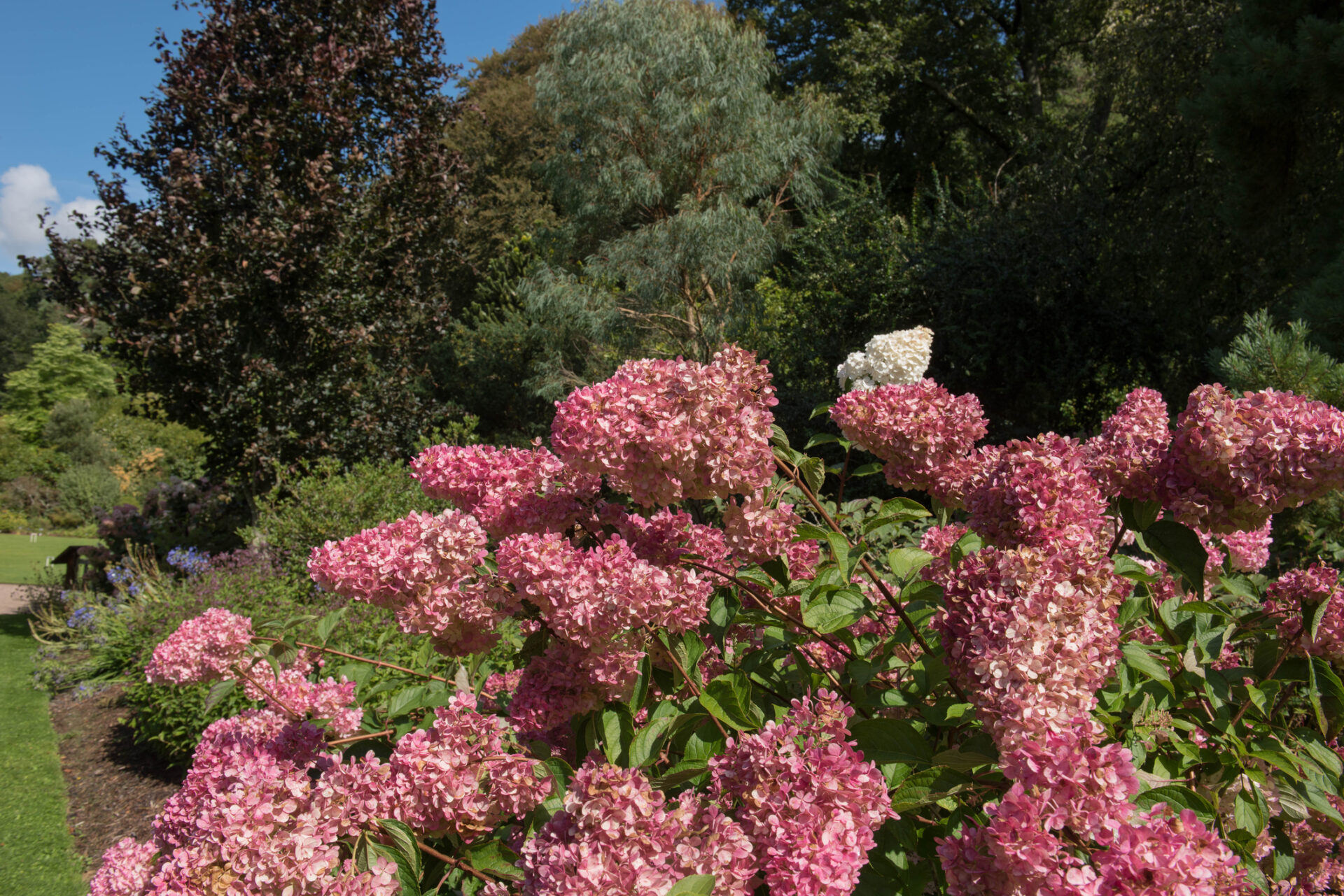 Kwiaty początkowo białe, z czasem przebarwiające się na ciemnoróżowo, zebrane w duże, stożkowate kwiatostany. Roślina długo zachowuje walory dekoracyjne, pięknie prezentując się w ogrodzie aż do jesieni.