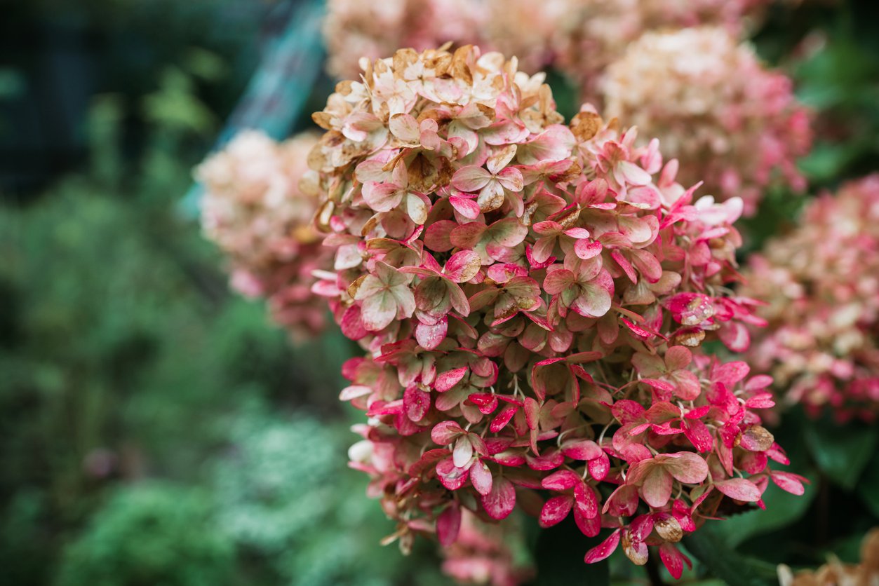 Hortensja bukietowa ‘Pinkachu’ to miniaturowa odmiana o dużych, pięknie przebarwiających się kwiatostanach. Dorasta do około 80-90 cm wysokości i podobnej szerokości, tworząc zwartą i bujną kępę.