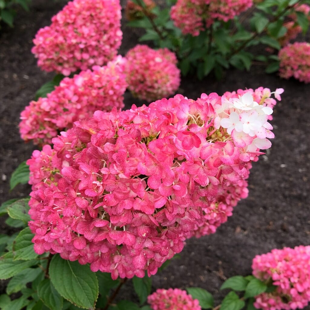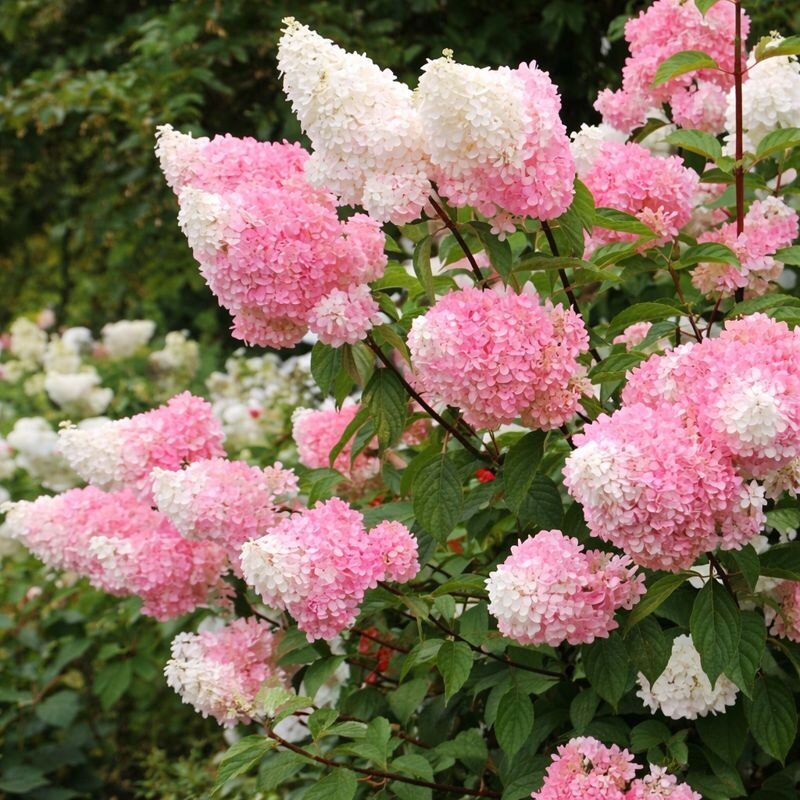 Największą ozdobą są duże, gęste, stożkowate kwiatostany o długości 25–30 cm, które zdobią krzew przez około 100 dni. W lipcu są białe, w sierpniu delikatnie różowe, a we wrześniu przybierają intensywny, malinowo-różowy kolor, tworząc efektowne, stopniowe przebarwienie. Dodatkowym atutem są ciemnozielone, szorstko owłosione liście, stanowiące doskonałe tło dla kwiatów.