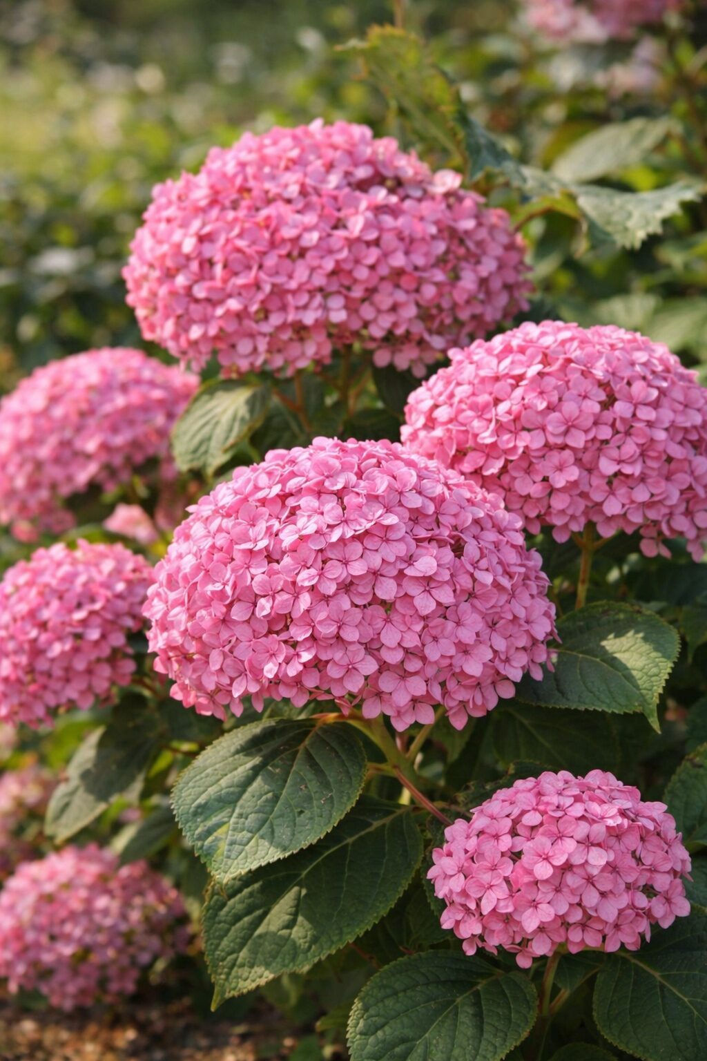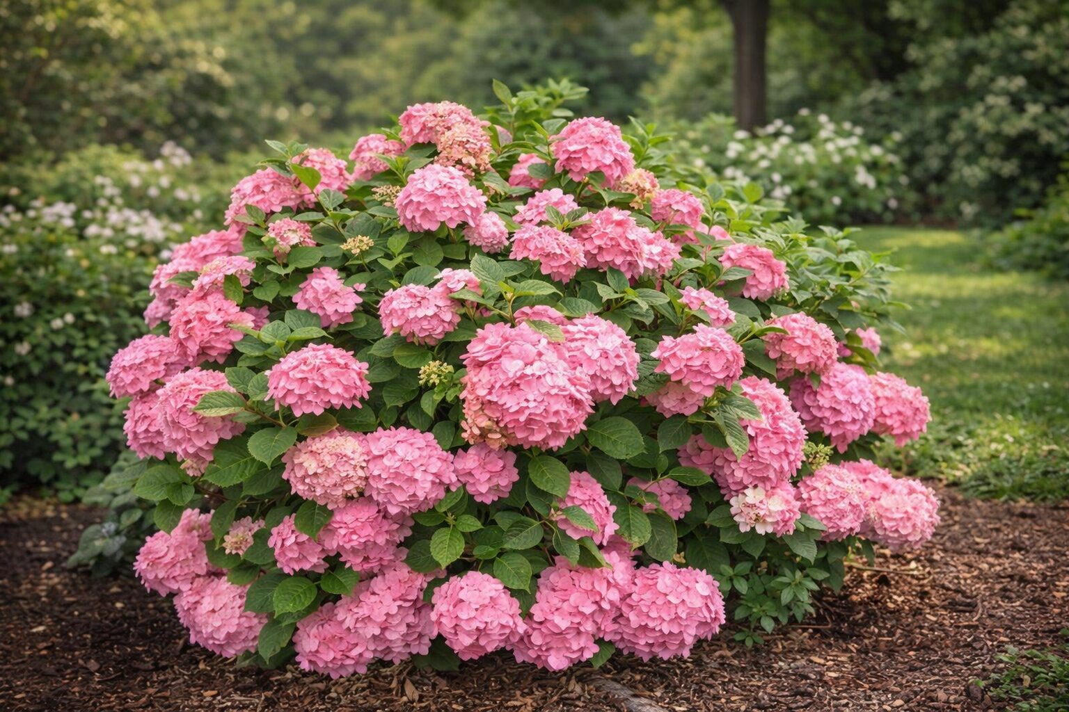 Hortensja drzewiasta Pink Annabelleto nowoczesna odmiana o różowych kwiatach, powstała jako udoskonalenie pierwszej różowej formy. Tworzy szybko rosnący krzew o gęstym, rozłożystym pokroju, dorastający do 1–1,5 m wysokości. Kwitnie na pędach jednorocznych, dlatego jest niezawodna nawet po ostrych zimach i wymaga silnego cięcia wiosną.