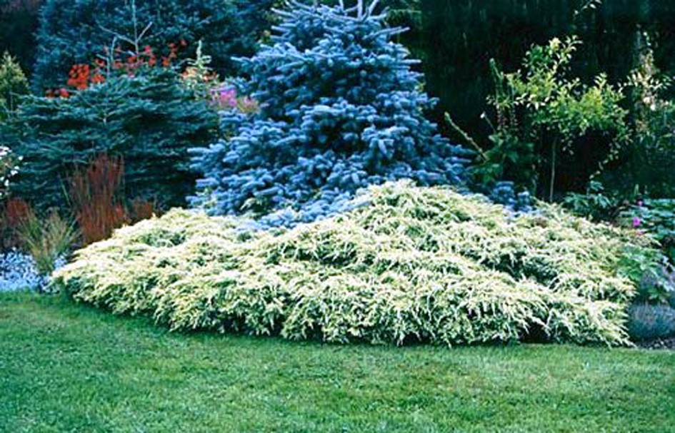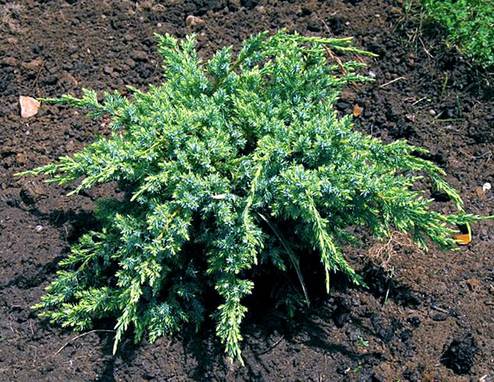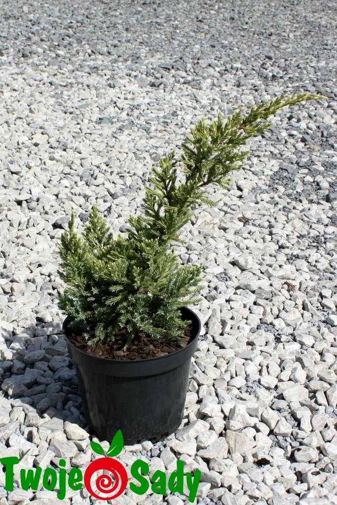 Karłowa forma o wyraźnie spłaszczonym pokroju i płożących pędach, wzrost niezbyt ekspansywny, 10 letnie egzemplarze uzyskują około 40 cm wysokości i 1m średnicy. Posiada promieniste, delikatne, przewisające na końcówkach pędy, pokryte srebrzysto zielonymi igłami, w okresie wzrostu intensywnie złocistożółte, co daje piękny kolorystyczny efekt.