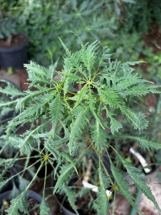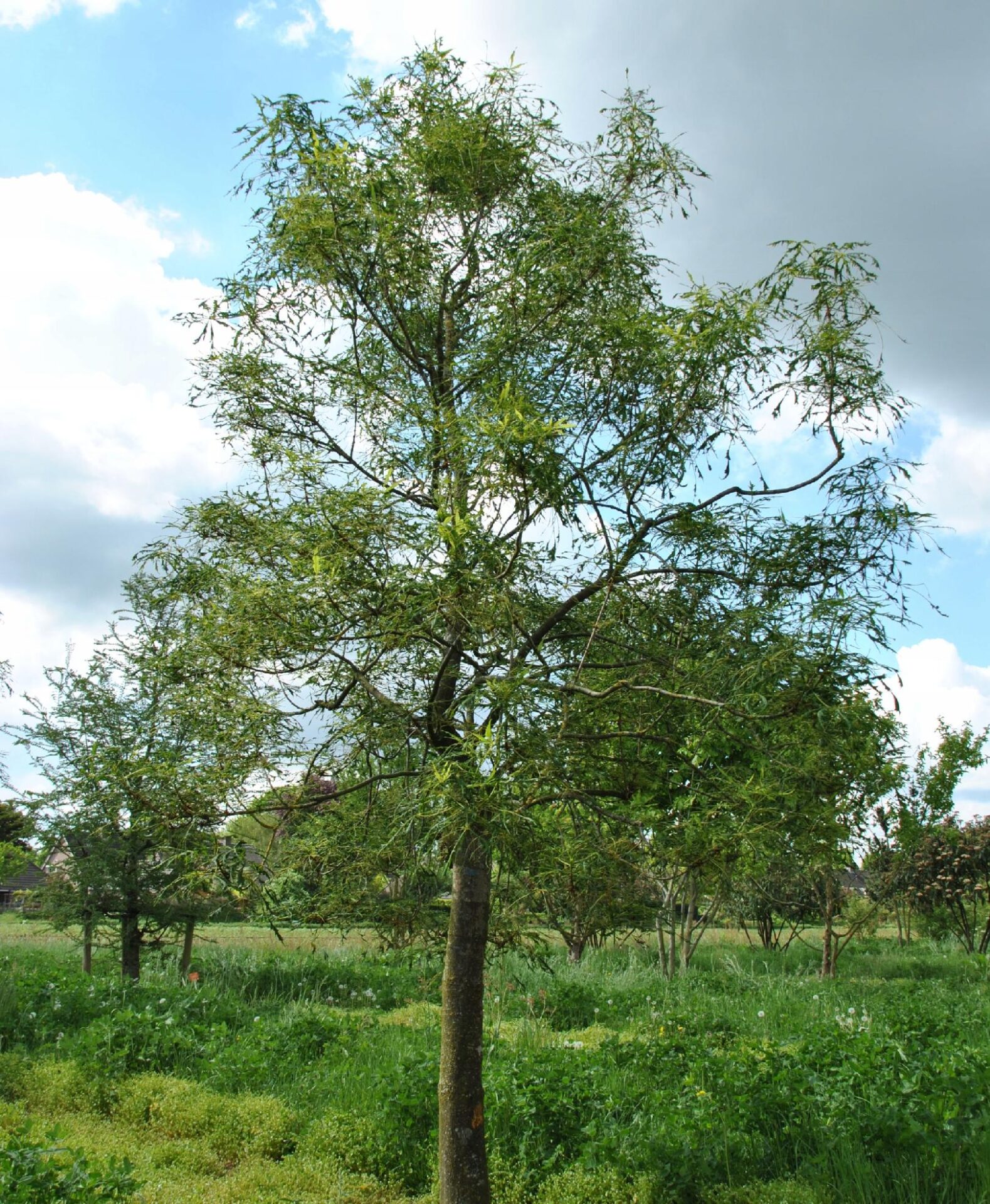 Smukłe, białe kwiatostany pojawiają się w maju i nadają roślinie lekkości. Dekoracyjne są także cienkie, delikatne gałęzie, które wraz z liśćmi tworzą efektowną, ażurową koronę. Najbardziej charakterystyczne są liście: złożone z 5–7 wąskich, nierówno ząbkowanych listków, filcowato owłosione od spodu. Ta harmonijna kombinacja kwiatów, liści i zwiewnych gałęzi czyni ‘Laciniata’ wyjątkowym soliterem w ogrodzie.