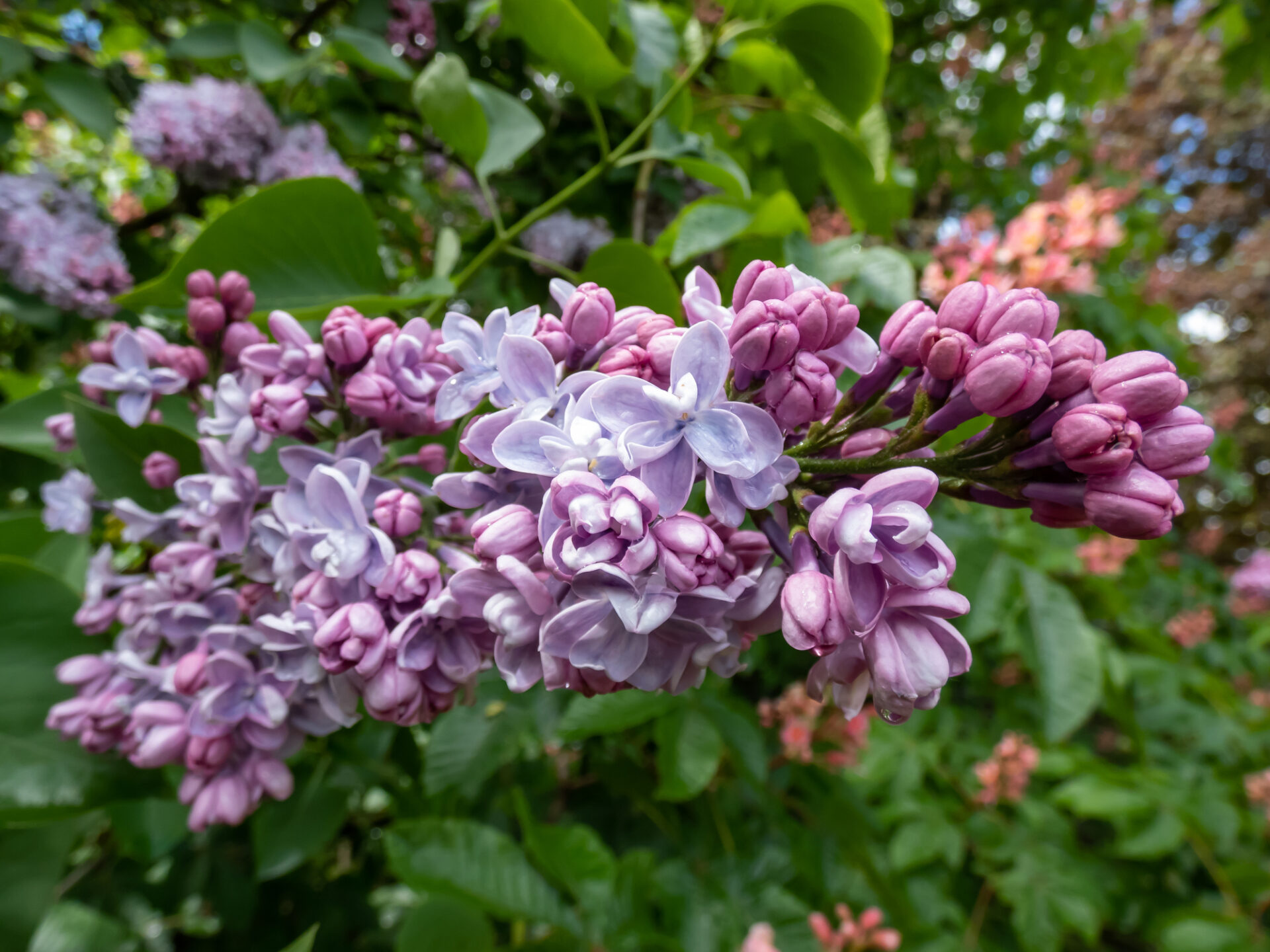 Lilak pospolity ‘Katherine Havemeyer’ to duży, rozłożysty krzew lub niewielkie drzewo o silnym wzroście, osiągające od 3 do 5 metrów wysokości. Kwitnie obficie w maju.