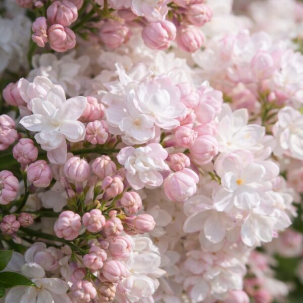Odmiana wyróżnia się pełnymi kwiatami o wyjątkowej, różowo-perłowej barwie, która w miarę przekwitania jaśnieje i bieleje. Kwiaty są intensywnie pachnące, zebrane w duże, luźne wiechy, które nie obwisają, dzięki czemu krzew zachowuje elegancki wygląd w czasie kwitnienia. Jest to jedna z najbardziej efektownych odmian lilaka, szczególnie dekoracyjna sadzona pojedynczo w miejscach eksponowanych.