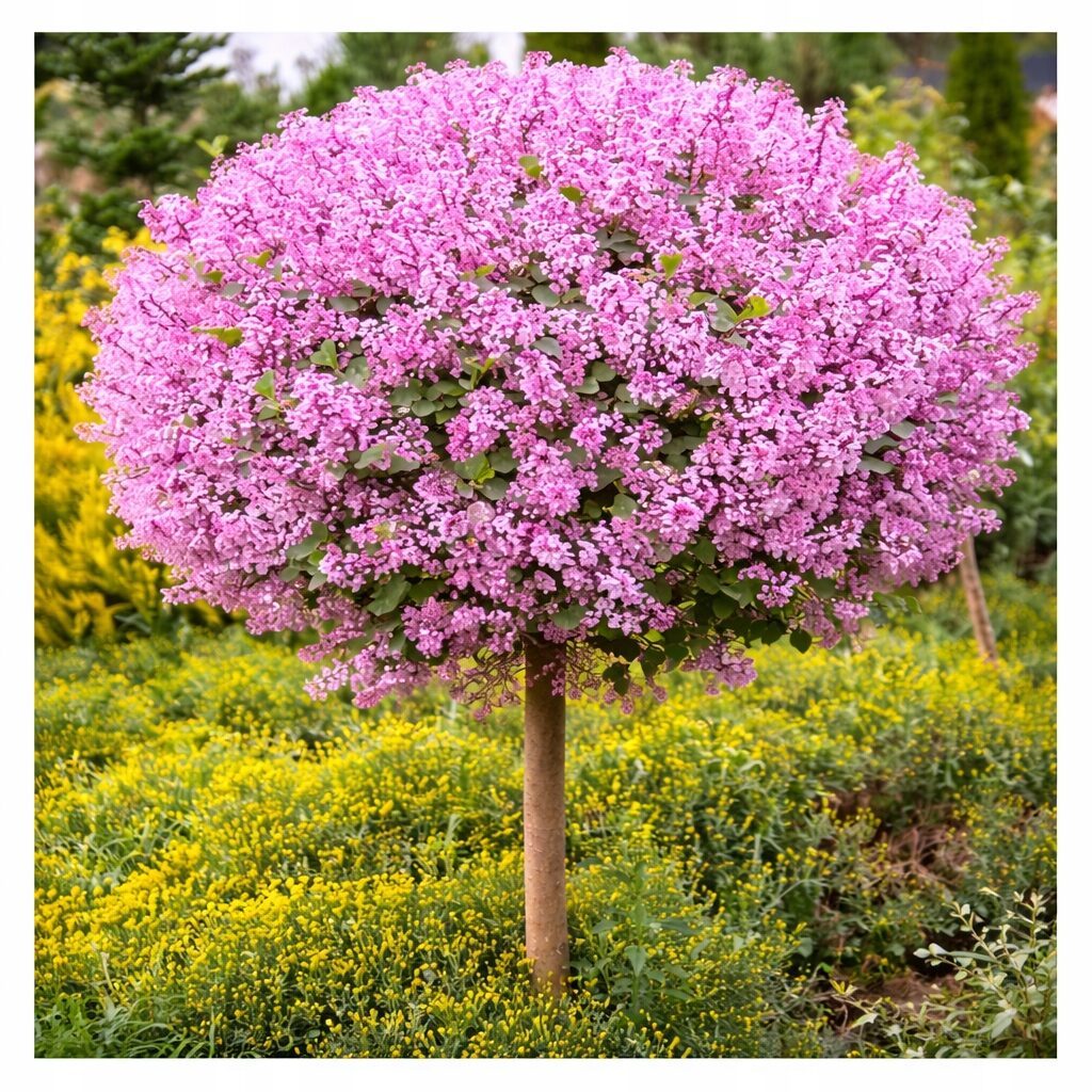 Największą ozdobą są duże, stożkowate wiechy pełnych, lekko pofalowanych kwiatów w intensywnie fioletowo-różowym odcieniu. Kwiaty są bardzo silnie pachnące, o klasycznym, lilakowym aromacie. W czasie kwitnienia drzewko prezentuje się niezwykle okazale i stanowi wyrazisty akcent w ogrodzie. Ciemnozielone liście tworzą gęste tło dla kwiatostanów i pozostają dekoracyjne przez cały sezon.
