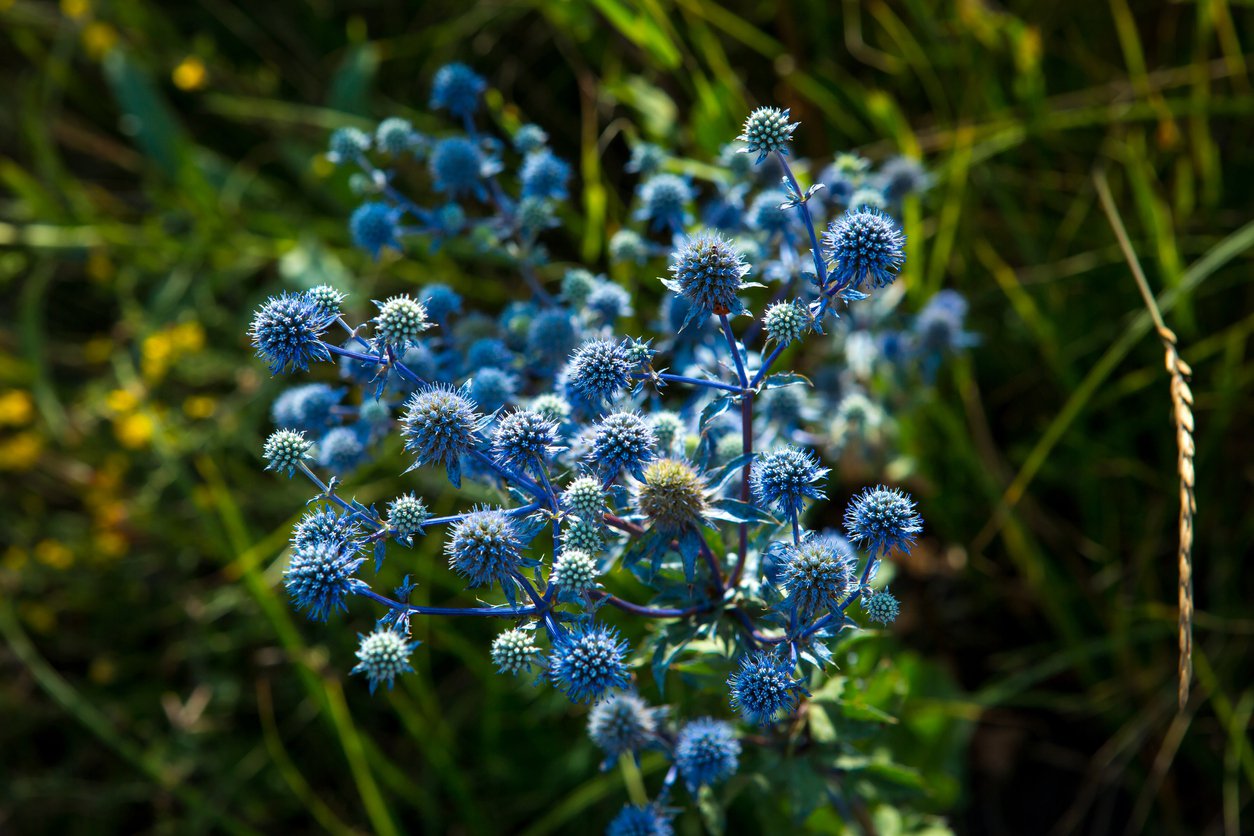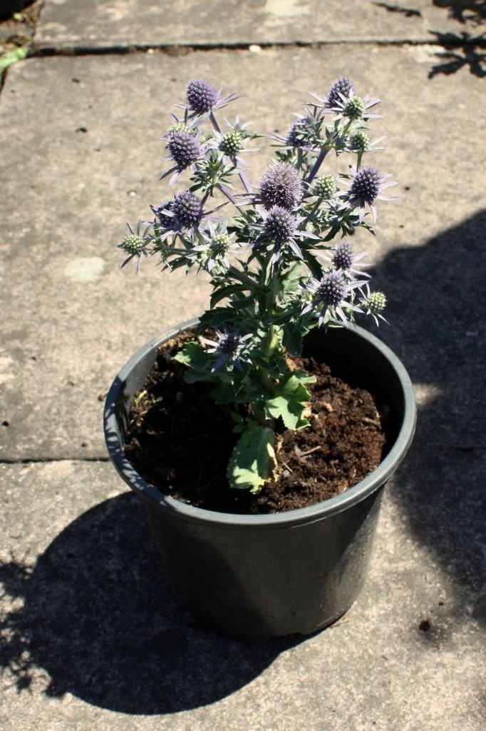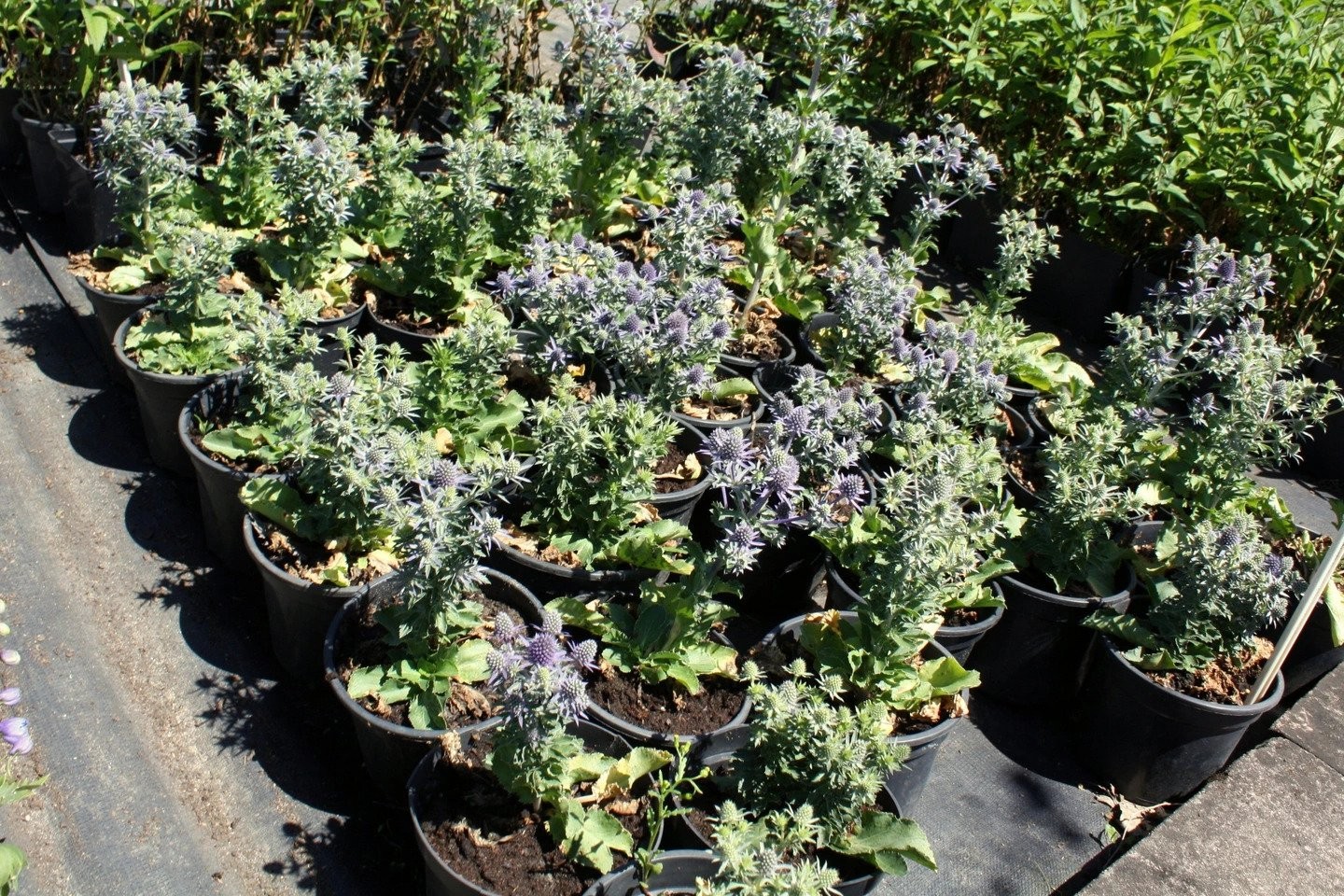Wieloletnia bylina z rodziny selerowatych, występująca naturalnie we Wschodniej i Środkowej Europie, na Kaukazie, w Zachodniej Syberii, Kazachstanie i Chinach. Odmiana “Blue Hobbit” jest kompaktowa – dorasta do 30 cm wysokości. Grube łodygi silnie rozgałęziają się na górze. Ciemnozielone liście o kształcie sercowatym mają wyraźnie ząbkowane brzegi. Najciekawsze w tej roślinie są z pewnością stalowo niebieskie kwiatostany o jajowatym kształcie. Pojawiają się na roślinie od czerwca do września. Zapylane są przez owady, bardzo atrakcyjna dla pszczół, trzmieli i motyli. Najlepiej rośnie na słonecznych, piaszczystych stanowiskach i jałowych glebach o odczynie obojętnym. Jest mrozoodporny. Doskonale nadaje się do obsadzania suchych i słonecznych rabat, do ogrodów naturalistycznych oraz jako uzupełnienie łąk kwietnych. Stosowana również jako kwiat cięty oraz suszony w bukietach i kompozycjach florystycznych.