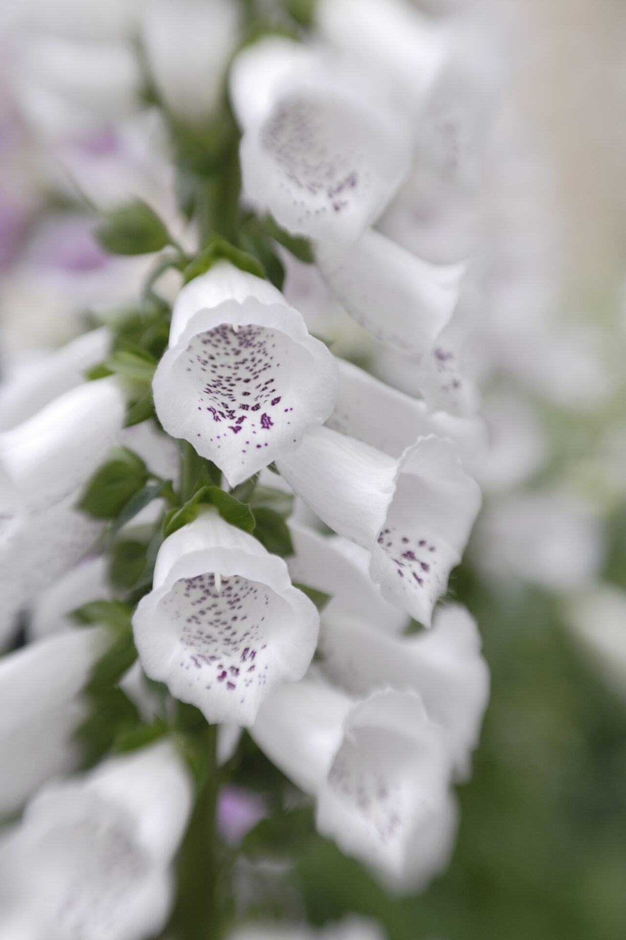 Naparstnica ‘Dottie White’ to kompaktowa odmiana naparstnicy purpurowej, należąca do rodziny babkowatych. Dorasta do około 60–75 cm wysokości i 35 cm szerokości. Kwitnie od maja do lipca, tworząc efektowne, dzwonkowate kwiaty o białej barwie z delikatnie nakrapianą gardzielą.