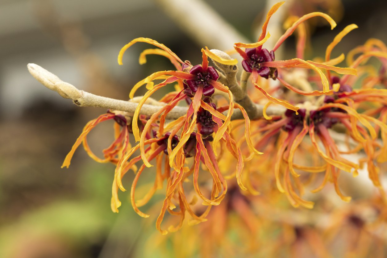 Oczar pośredni ‘Jelena’ to wysoki krzew dorastający do 4 m wysokości i szerokości. Oczar budzi się do życia często w środku zimy, kiedy temperatura dnia utrzymuje się na poziomie około 5°C. Wtedy na gałązkach pojawiają się małe, frędzelkowate, pachnące kwiaty. Z uwagi na swoje właściwości lecznicze nazywany bywa ‘Złotem Indian’. Jest silnym środkiem o działaniu ściągającym, przeciwkrwotocznym, przeciwzapalnym i przeciwbakteryjnym.