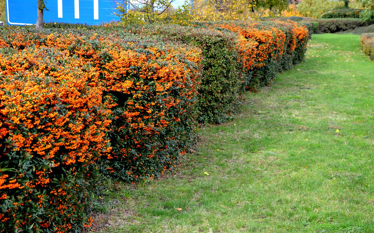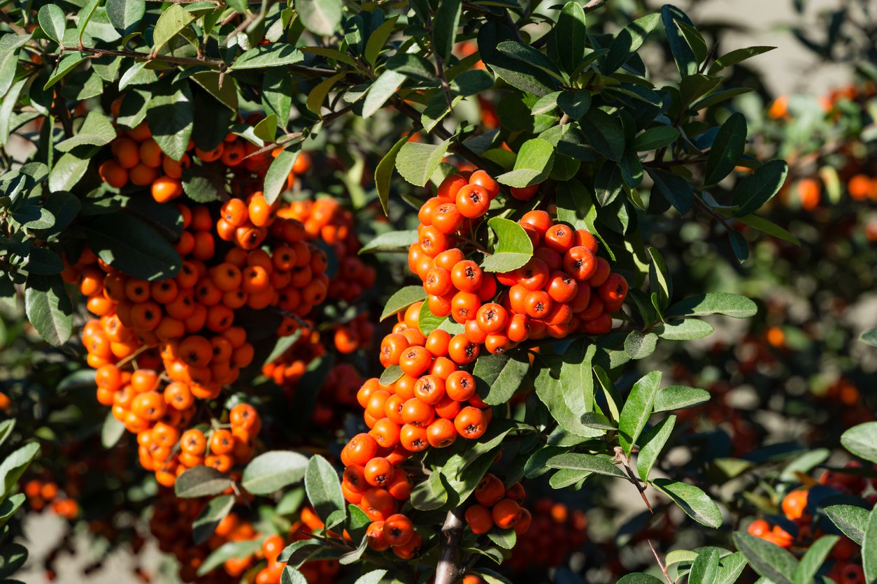 Ciernisty, częściowo zimozielony krzew o wyprostowanym pokroju, dorastający do około 2,5 m wysokości. Liście lancetowate, skórzaste, błyszczące, w łagodne zimy pozostają na krzewie. Roślina kwitnie na biało, kwiaty pojawiają się w maju. Owoce kuliste, pomarańczowoczerwone, bardzo ozdobne, utrzymujące się na krzewie do pierwszych mrozów. Lubi stanowiska od słonecznych do półcienistych, osłonięte i ciepłe, często sadzony przy ścianach. Młode rośliny są wrażliwe na mrozy. Wymagania glebowe przeciętne. Dobrze prezentuje się pojedynczo lub w grupach, efektownie wygląda sadzony w pojemnikach.