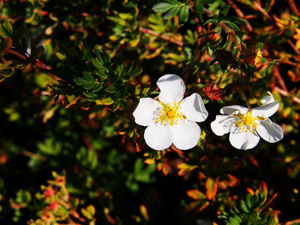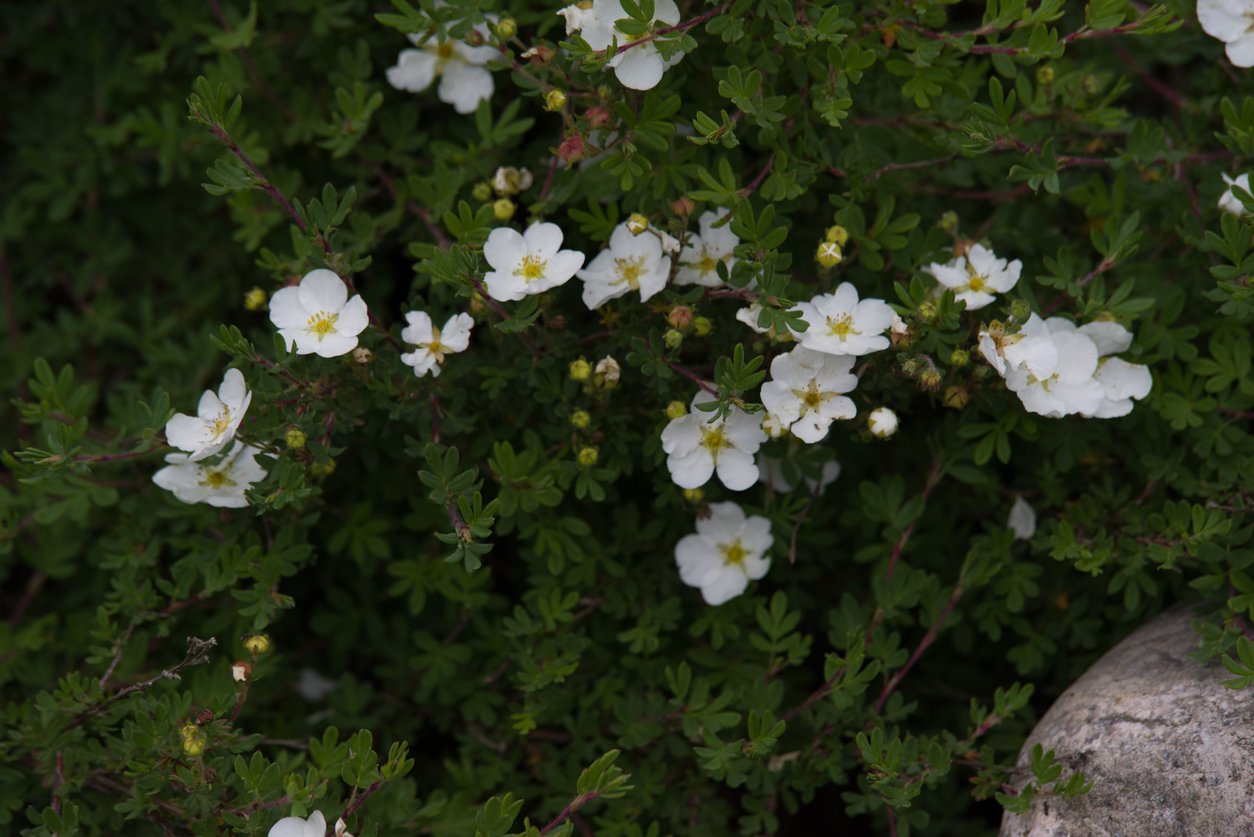 Gęsty, szeroki krzew osiągający około 1 m wysokości i szerokości o regularnym, kulistym pokroju. Młode pędy czerwonawe, starsze brązowe. Liście drobne, pierzaste, złożone, obustronnie owłosione, zielone. Kwiaty duże, w kolorze czysto białym z żółtym środkiem. Kwitnie bardzo obficie i długo, od końca maja do września. Kwiaty skupione na końcach pędów w wielokwiatowych wiechach. Dobrze rośnie na glebach lekkich, piaszczystych i gliniasto-piaszczystych. Odporny na mrozy, zanieczyszczenia powietrza i suszę. Preferuje miejsca o pełnym nasłonecznieniu. Polecany do sadzenia na rabatach, w grupach, jako roślina okrywowa, w różnych typach zieleni.
