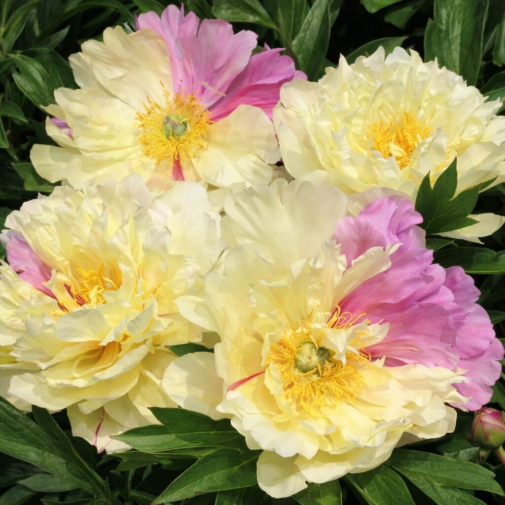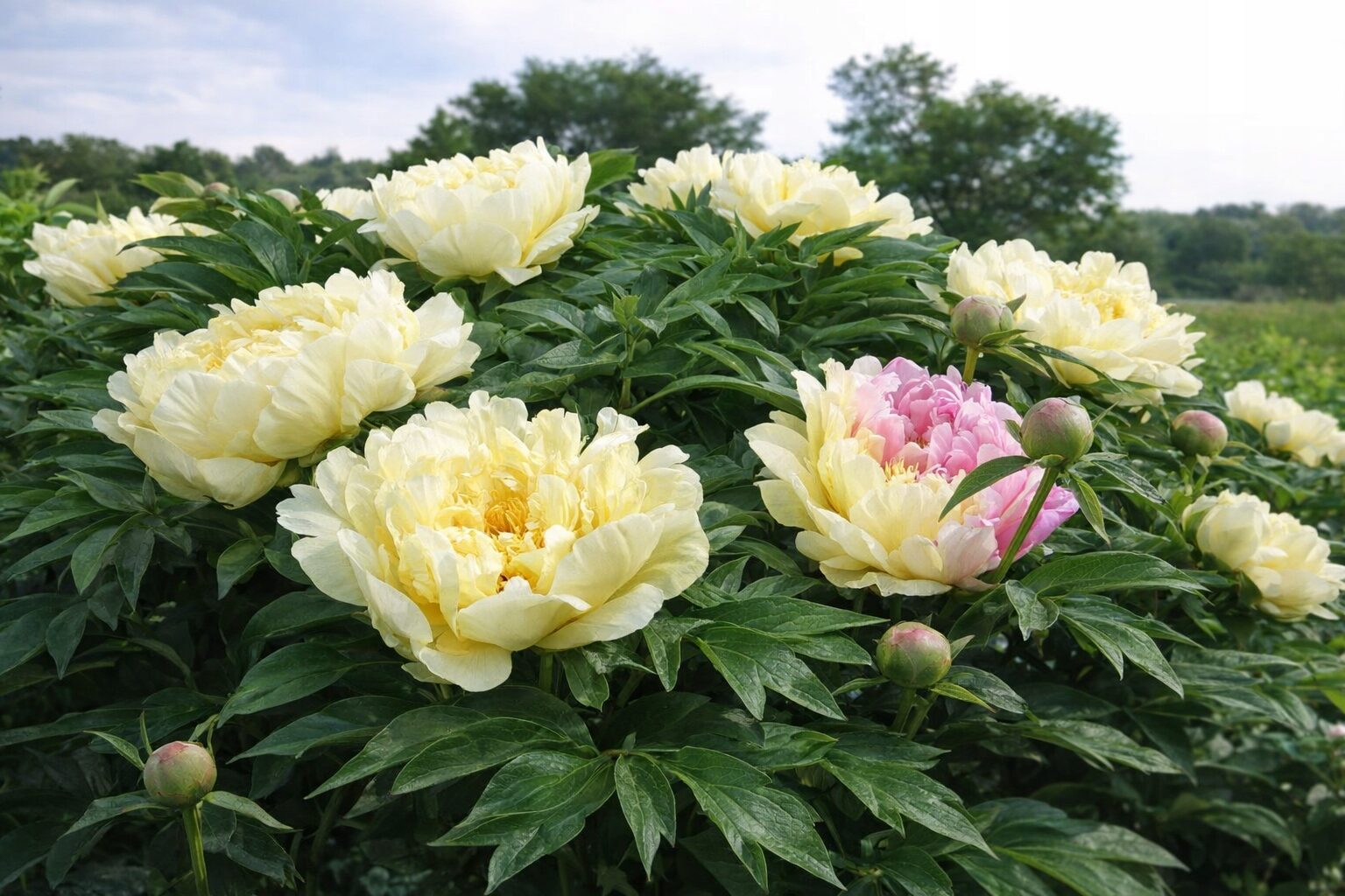 Piwonia ITOH ‘Lemon Dream’ wyróżnia się silnym wzrostem oraz długowiecznością. Tworzy zwarte, eleganckie kępy o wyprostowanym pokroju i dorasta do około 70–80 cm wysokości oraz podobnej szerokości. Pędy są mocne i stabilne, a część nadziemna zanika na zimę, co jest cechą charakterystyczną piwonii z grupy ITOH.