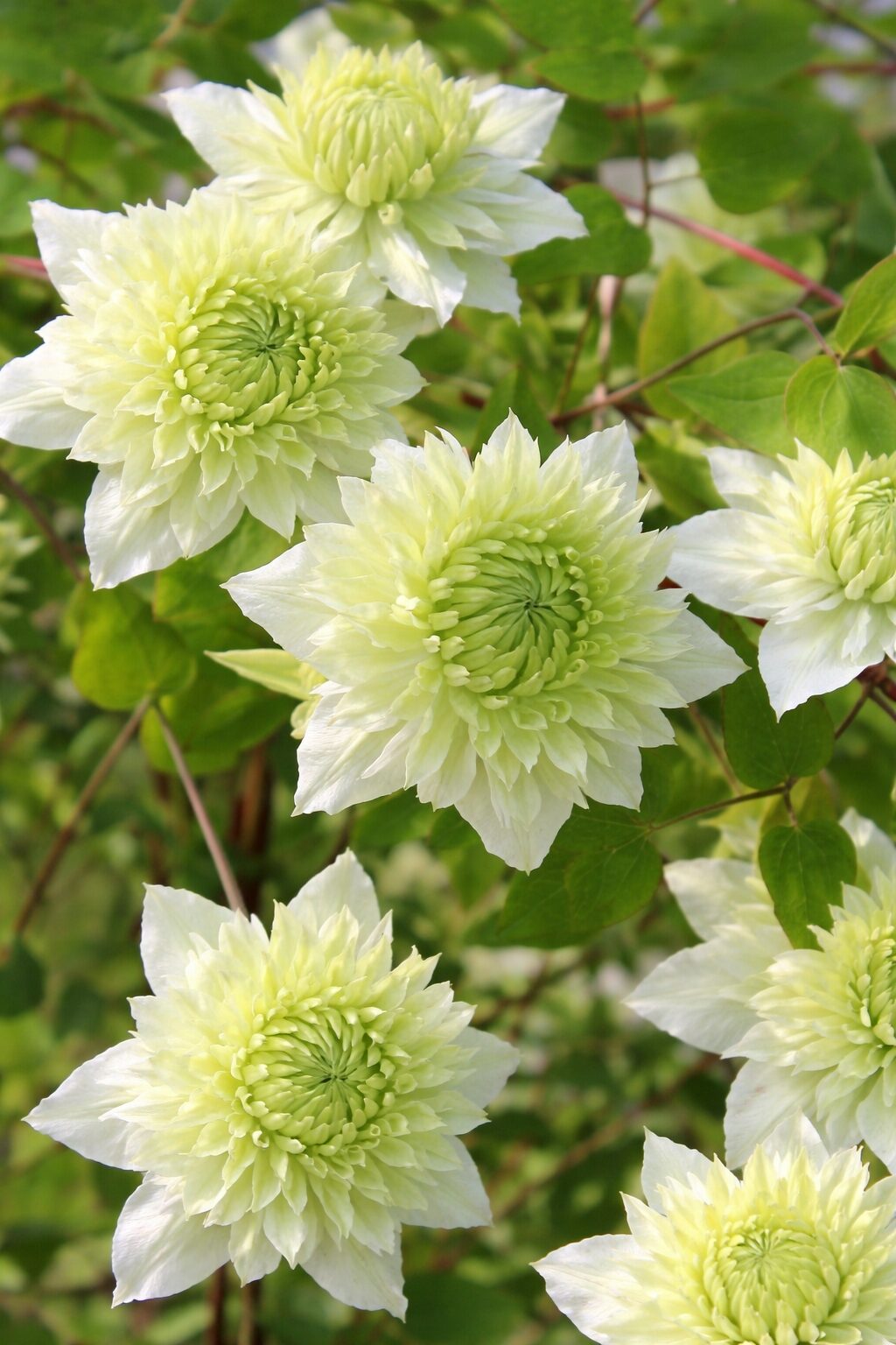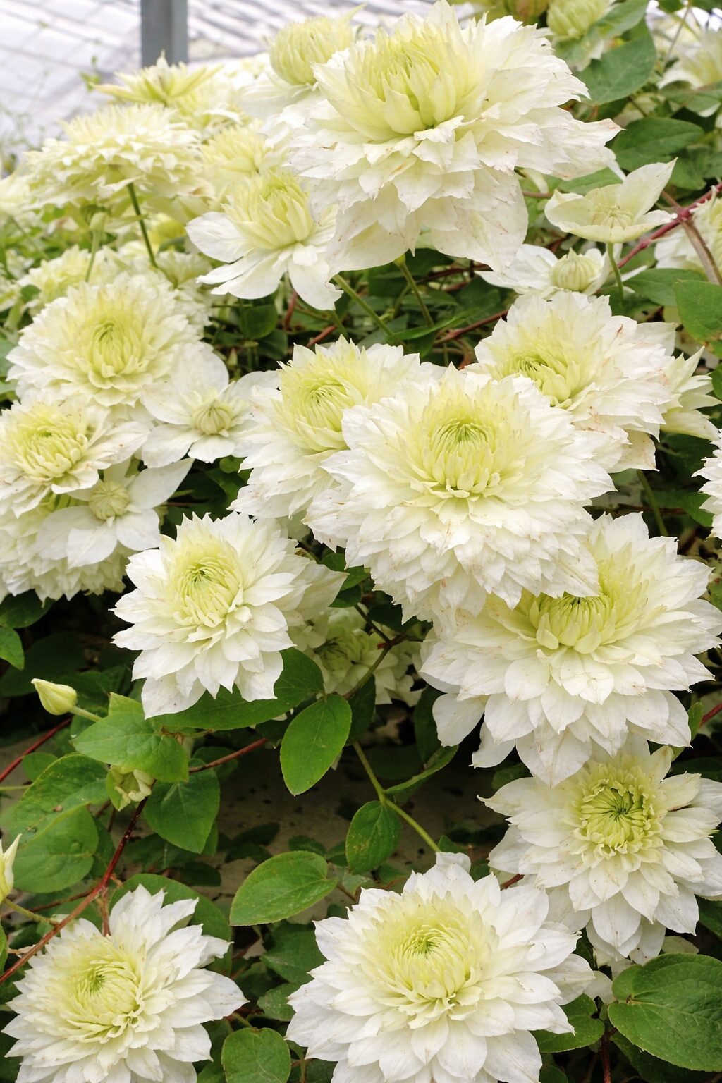 Odmiana wyróżnia się dużymi, pełnymi, gwiaździstymi kwiatami o wyjątkowej, zmiennej kolorystyce – początkowo limonkowej, stopniowo przechodzącej w kremowobiałą. Kwiaty pojawiają się obficie i długo, dzięki czemu roślina przez wiele tygodni pozostaje atrakcyjną ozdobą. Zielone liście tworzą eleganckie tło dla jasnych kwiatów. Powojnik ‘Manju’ doskonale sprawdza się na pergolach, trejażach, altanach i ogrodzeniach, a także w dużych pojemnikach na balkonach i tarasach. Idealny do ogrodów romantycznych, nowoczesnych i naturalistycznych.