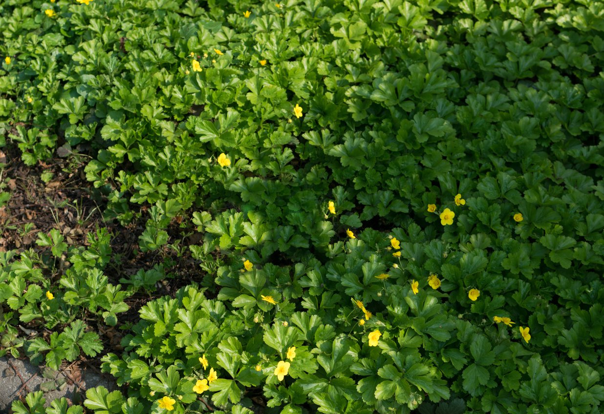 Od maja do czerwca zielone kobierce pokrywają się mnóstwem niewielkich, pięciopłatkowych kwiatów z długimi pręcikami w cudownym, złocisto-żółtym kolorze. Po zapyleniu kwiaty przekształcają się w kuliste, czerwone, niejadalne owoce, przypominające poziomki. Są niejadalne, ale za to bardzo dekoracyjne.