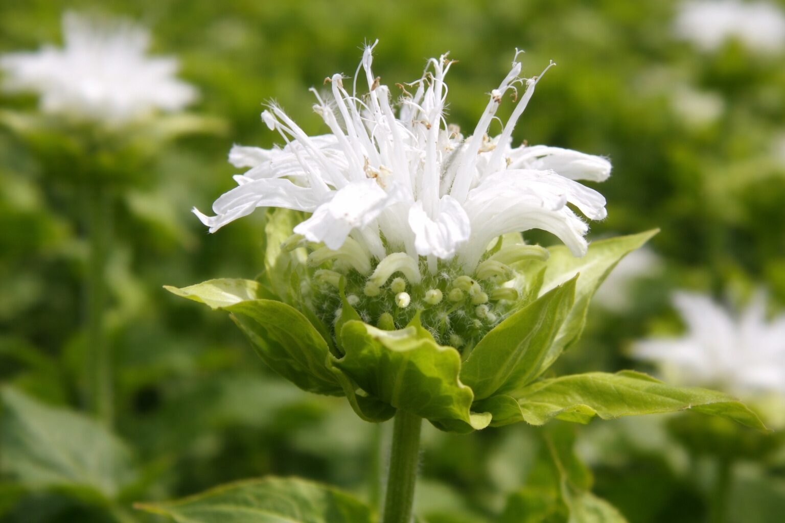 Odmiana o śnieżnobiałych, główkowatych kwiatostanach z zielonymi podsadkami, osadzonych na sztywnych pędach. Kwiaty są miododajne i chętnie odwiedzane przez pszczoły, trzmiele i motyle. Liście aromatyczne, dekoracyjne przez cały sezon. Doskonała na rabaty bylinowe, do ogrodów naturalistycznych, w małych grupach oraz do uprawy w pojemnikach. Kwiaty nadają się do cięcia.