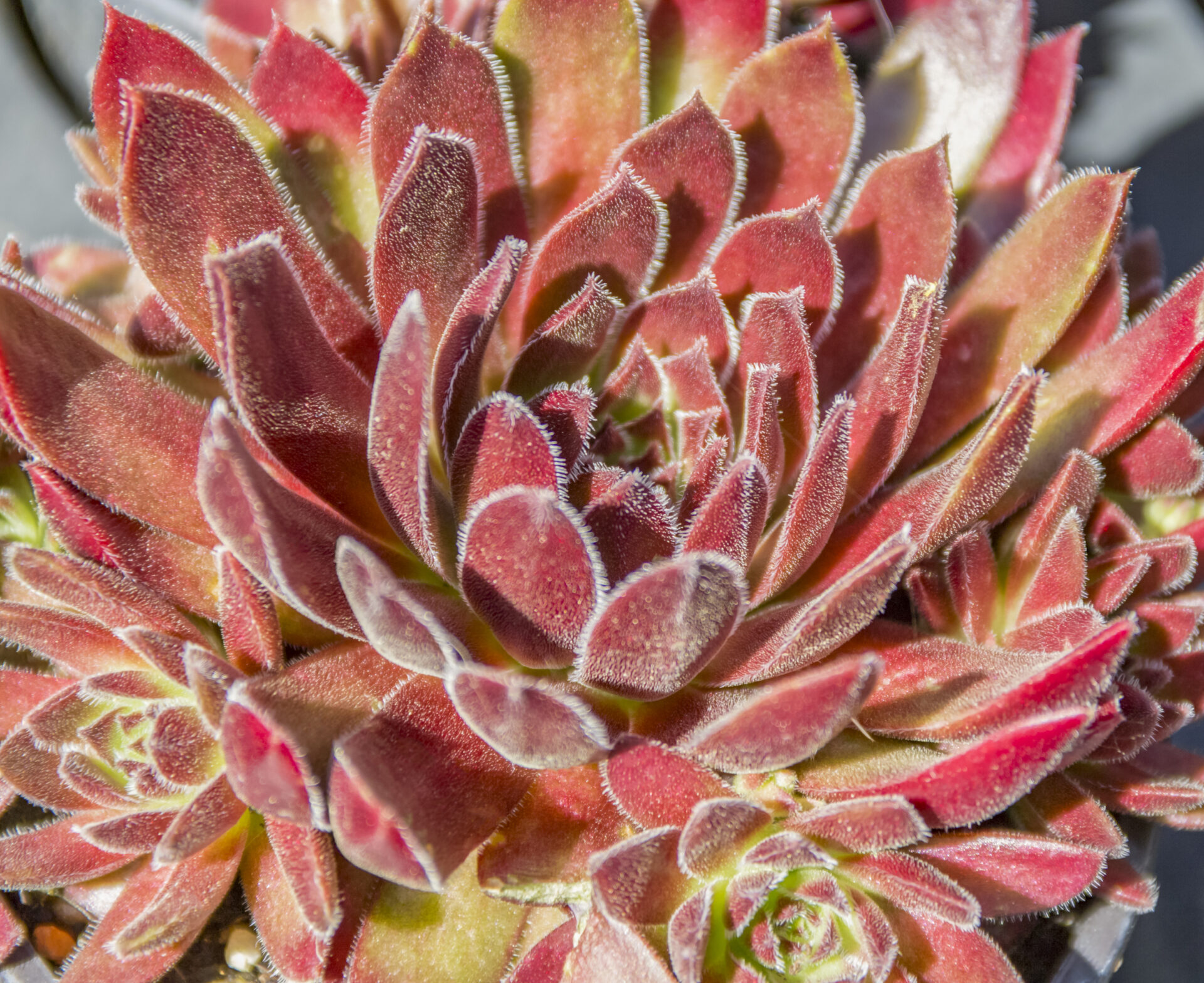 Liście zimotrwałe, zielone z czerwono-brązowymi końcówkami, pokryte woskowym nalotem, tworzą duże rozety o wysokości około 5 cm. Kwiaty różowe w kształcie gwiazdek, zebrane w rozgałęzione kwiatostany. Roślina efektownie prezentuje się w ogrodach skalnych, pośród kamieni, w pojemnikach, tworząc niskie dywany i pełniąc funkcję okrywową. Polecana do sadzenia w grupach po kilka sztuk.