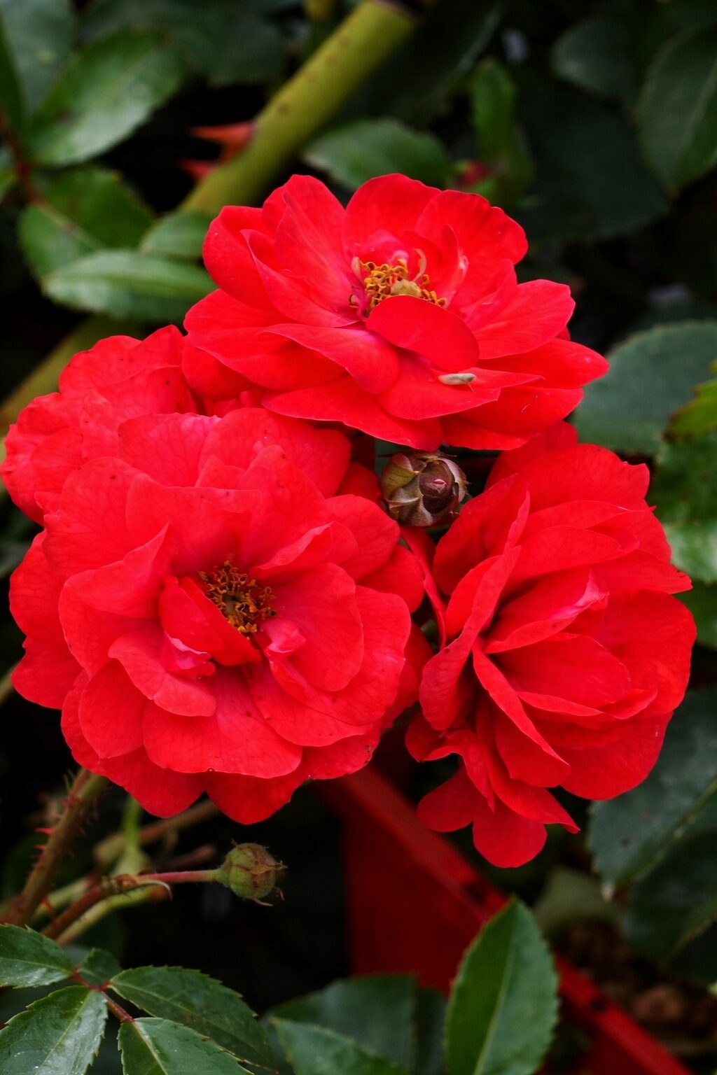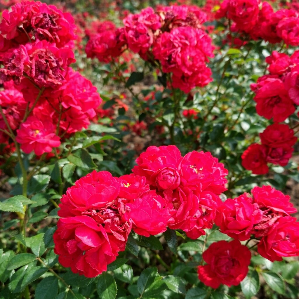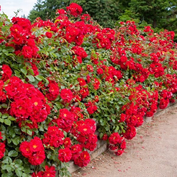 Kwiaty drobne (2–3 cm), pełne, w intensywnie czerwonym do różowoczerwonego kolorze, zebrane w duże, liczne kwiatostany. Pędy są cienkie, wzniesione i delikatnie przewieszające się pod ciężarem kwiatów, co nadaje krzewowi lekkości. Liście drobne, błyszczące, ciemnozielone dobrze kontrastują z barwą kwiatów. Odmiana bardzo dobrze sprawdza się na rabatach, obwódkach, skarpach oraz jako roślina okrywowa, sadzona w większych grupach (5–6 szt. na m²), a także w pojemnikach.