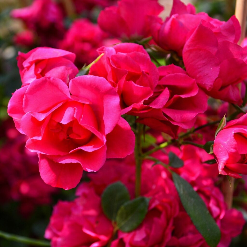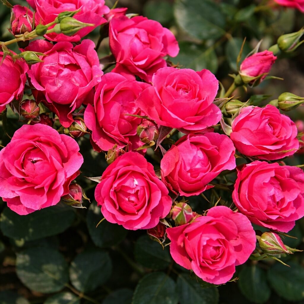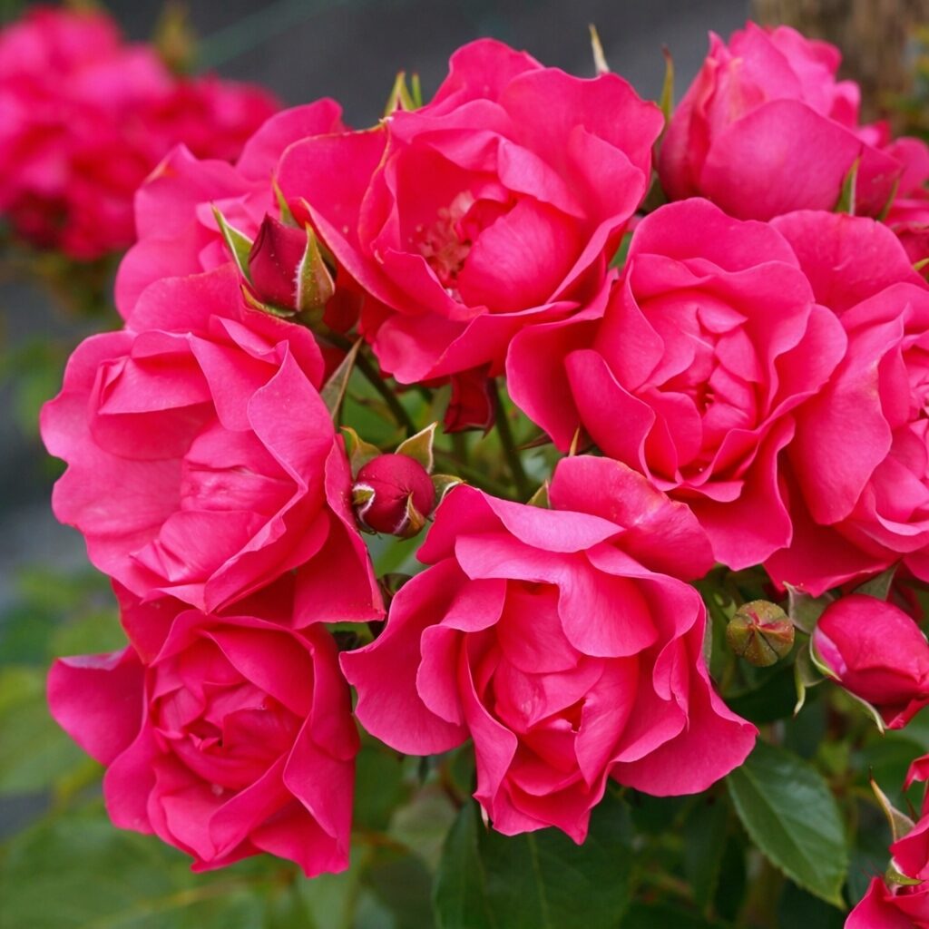 Odmiana wyróżnia się intensywnie jaskraworóżowymi kwiatami, półpełnymi, o średnicy 5–6 cm, zebranymi w okazałe baldachy. Kwiaty zawiązują się przez całe lato, dzięki czemu krzew pozostaje dekoracyjny przez długi czas. Barwa płatków nie blednie nawet przy silnym nasłonecznieniu, a kwiaty dobrze znoszą upały i deszczową aurę. Zapach jest słaby, delikatny. Roślina doskonale sprawdza się na rabatach kwiatowych, w nasadzeniach miejskich, jako niski żywopłot oraz w uprawie pojemnikowej.
