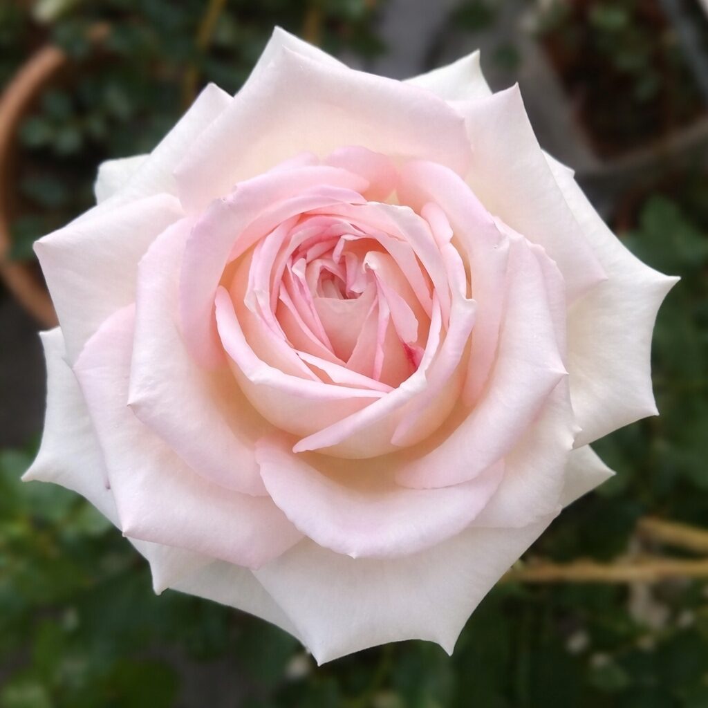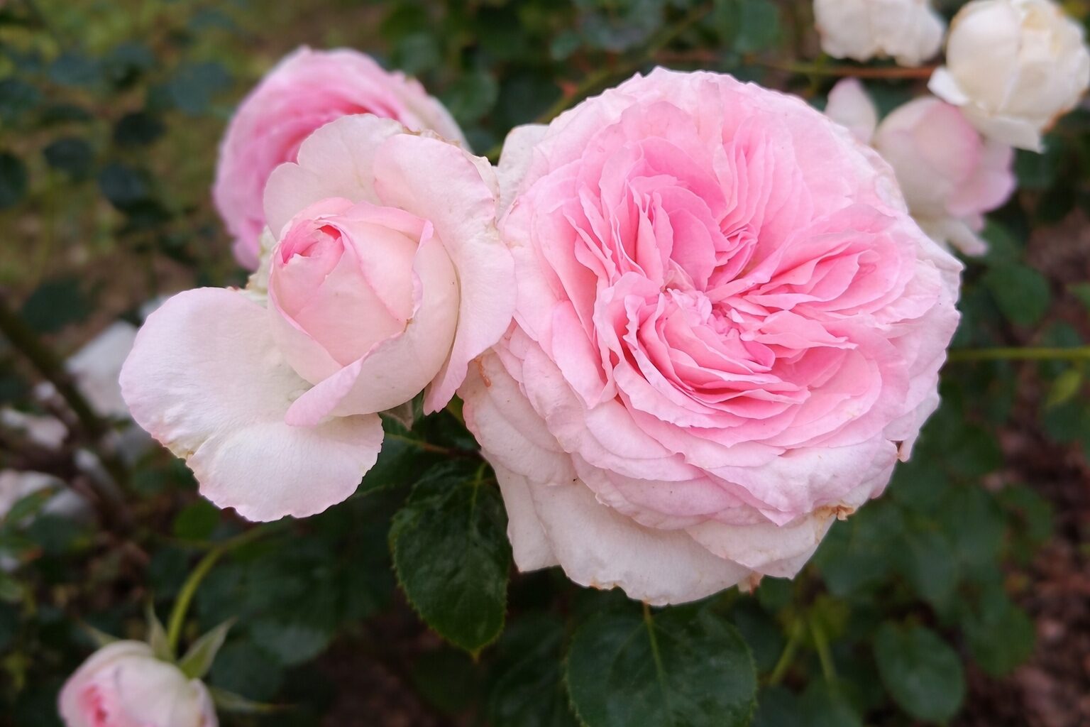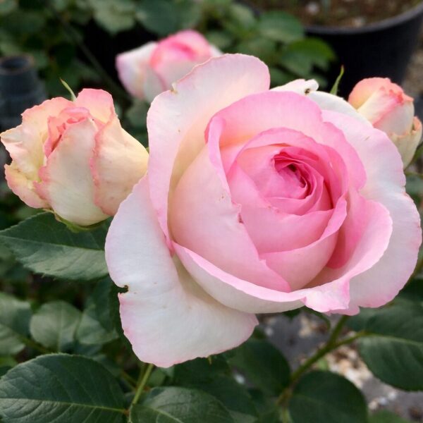 Odmiana zachwyca dużymi, pełnymi kwiatami złożonymi z 80–90 płatków, o wyjątkowej, dwukolorowej barwie. Serce kwiatu ma jasnoróżowy odcień, natomiast zewnętrzne płatki są kremowobiałe, co nadaje całości bardzo delikatny i elegancki wygląd. Kwiaty osadzone są na mocnych łodygach, są trwałe i doskonale nadają się na kwiat cięty. Dodatkowym atutem jest intensywny, owocowy zapach. Całość dopełniają ciemnozielone, błyszczące liście, które podkreślają urodę kwiatów. Odmiana świetnie prezentuje się na rabatach, w nasadzeniach grupowych oraz w pojemnikach i donicach.