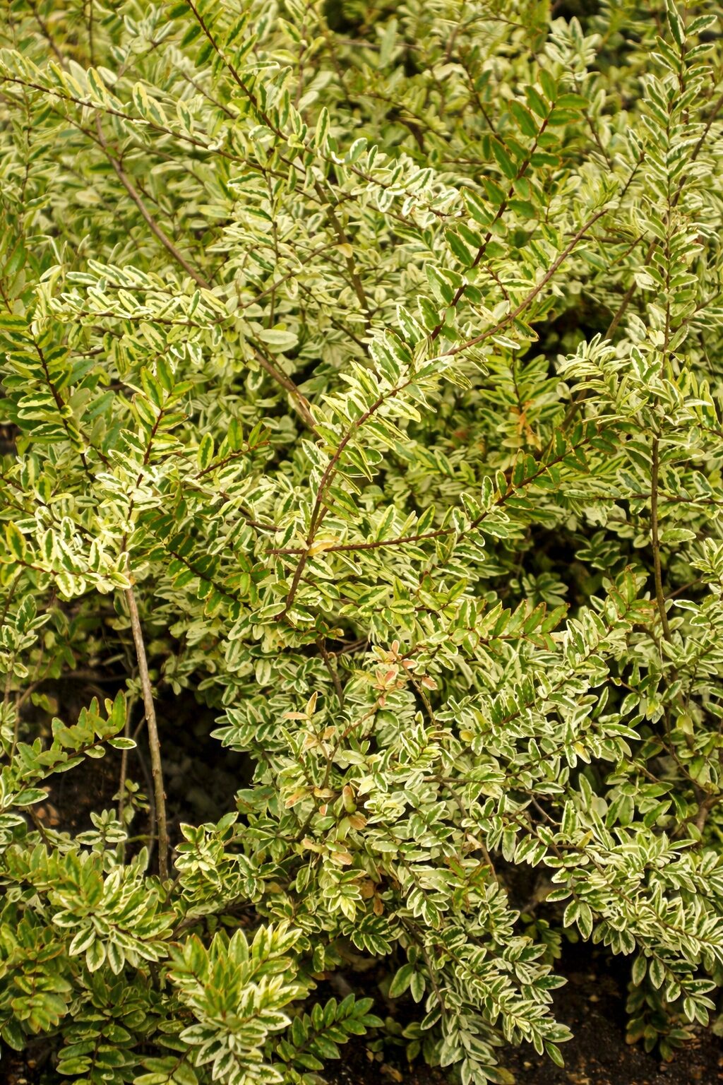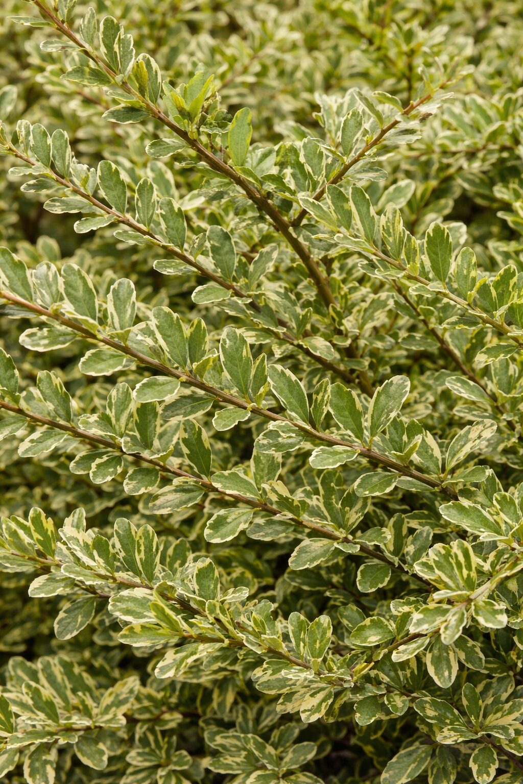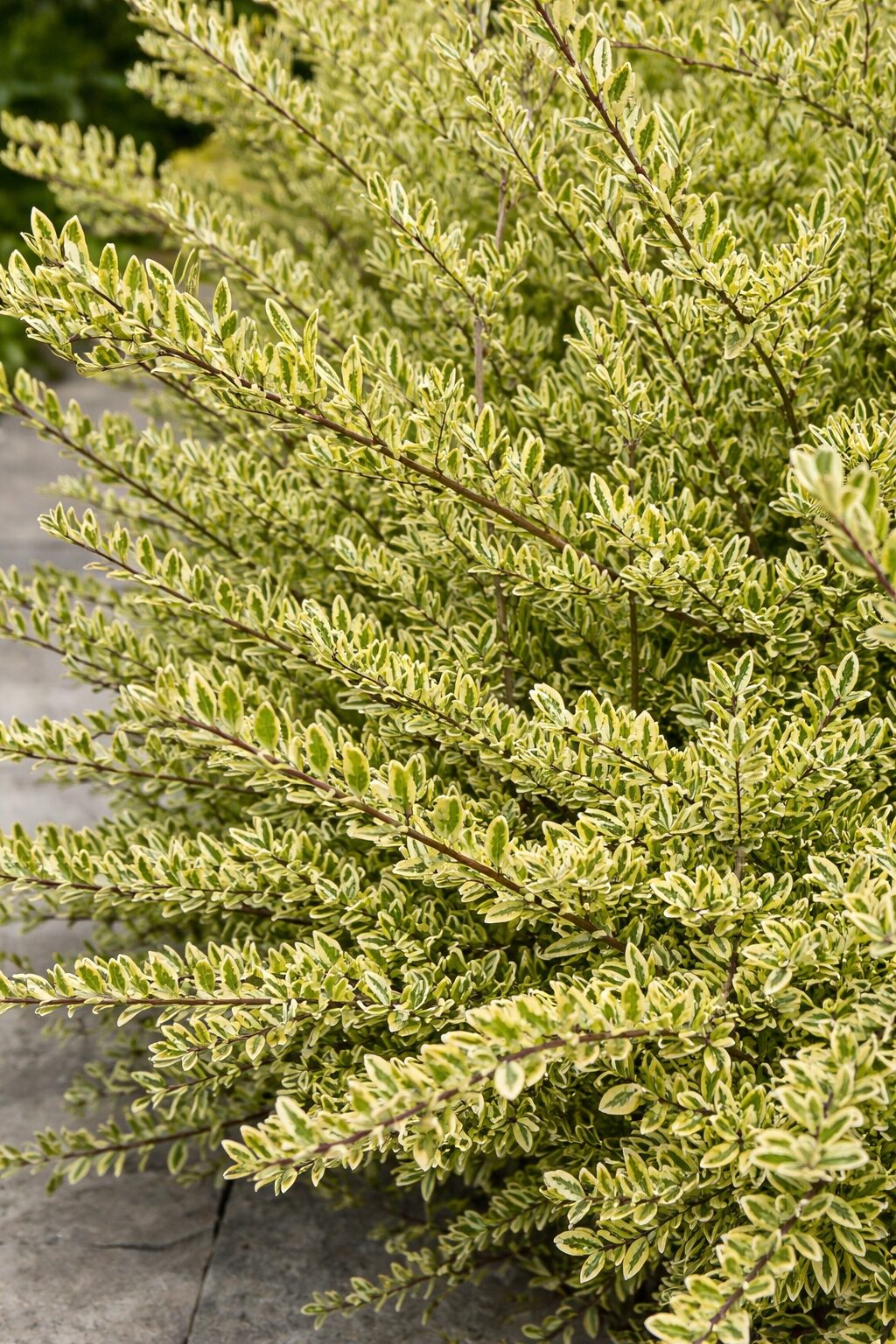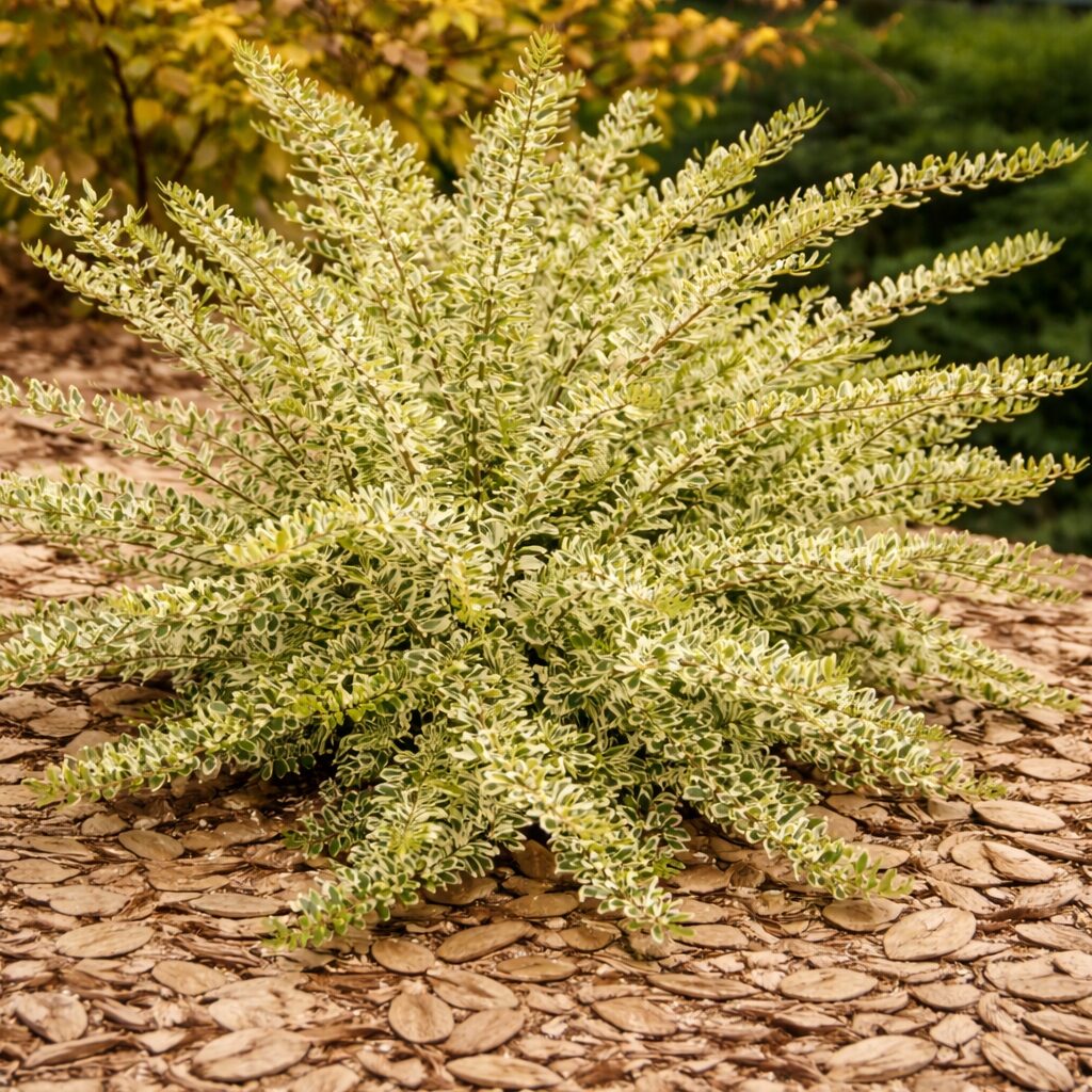 Największą ozdobą są drobne, błyszczące liście z zielonym środkiem i kremowo-żółtym obrzeżeniem, które efektownie rozjaśniają rabaty przez cały rok. W maju i czerwcu pojawiają się niepozorne, kremowe kwiaty, a pod koniec lata czasem drobne, purpurowe owoce. Roślina świetnie nadaje się na obwódki, niskie żywopłoty i nasadzenia okrywowe.