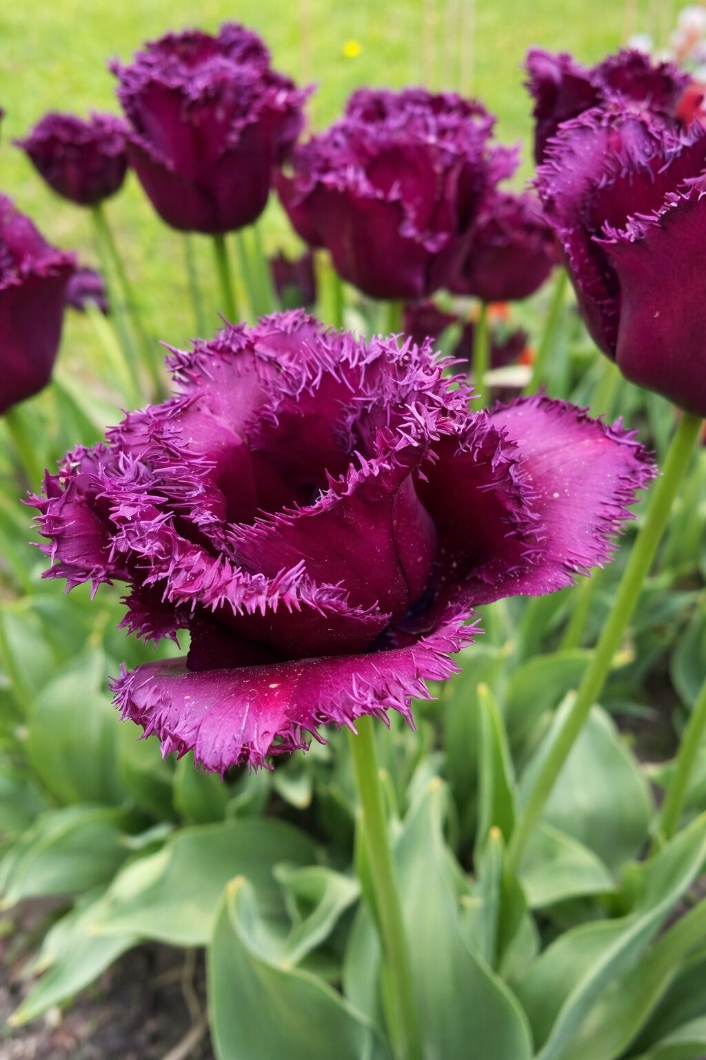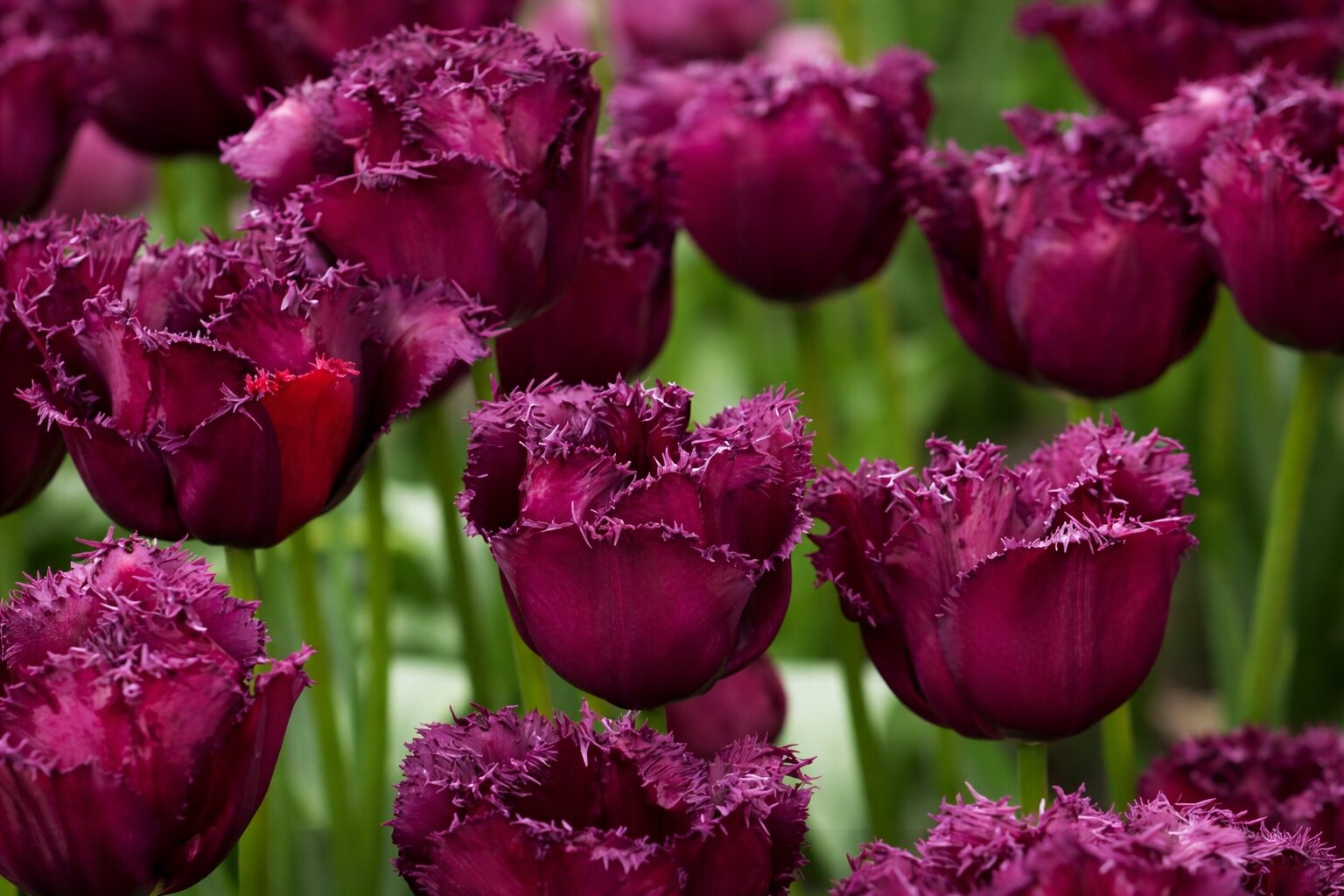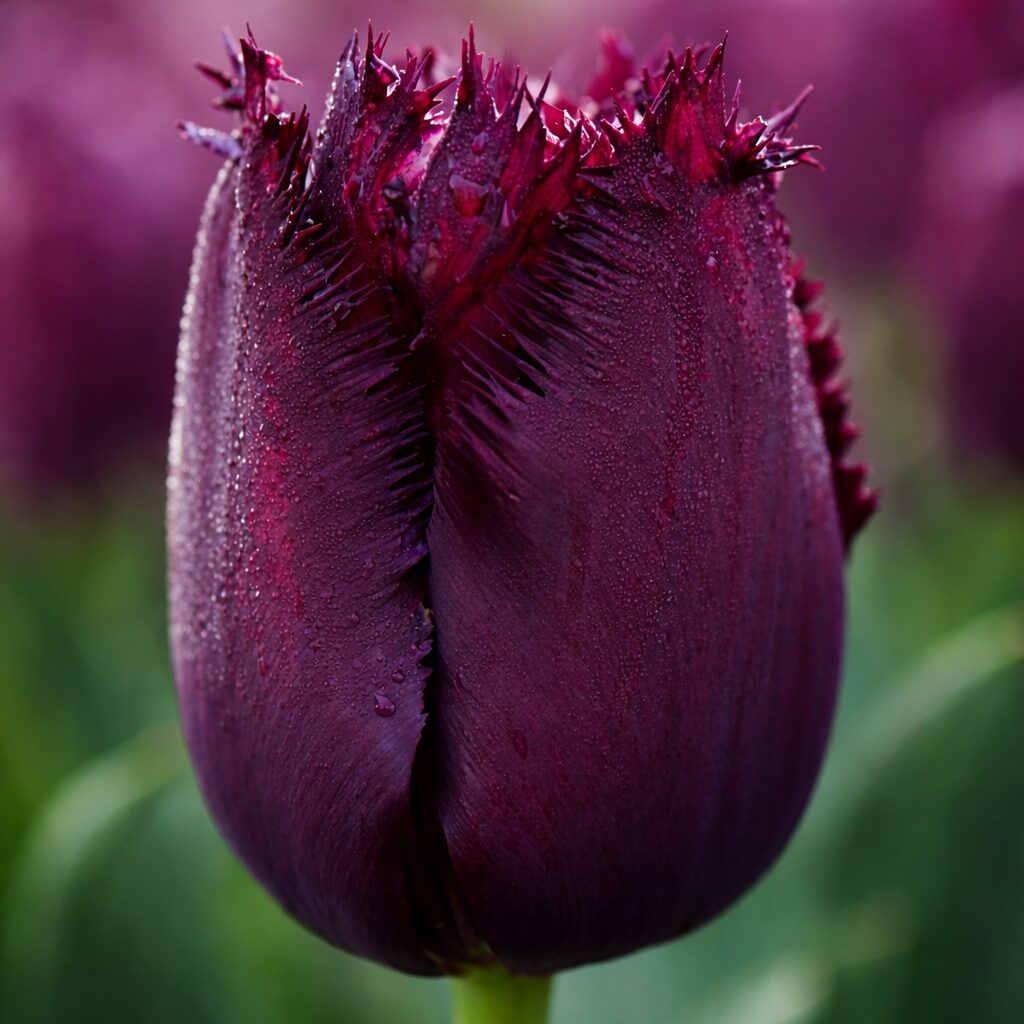 Odmiana wyróżnia się pojedynczymi, silnie postrzępionymi kwiatami o głębokiej purpurowej barwie, wpadającej w bordo. Charakterystyczne, nieregularne brzegi płatków nadają kwiatom oryginalny, egzotyczny wygląd i sprawiają, że tulipan przyciąga wzrok nawet z dużej odległości. Intensywny kolor doskonale kontrastuje z jasnymi odmianami tulipanów, podkreślając nowoczesne i wyraziste kompozycje. Odmiana szczególnie dobrze sprawdza się na rabatkach o mocnej kolorystyce, w nasadzeniach grupowych oraz jako kwiat cięty do nowoczesnych bukietów.
