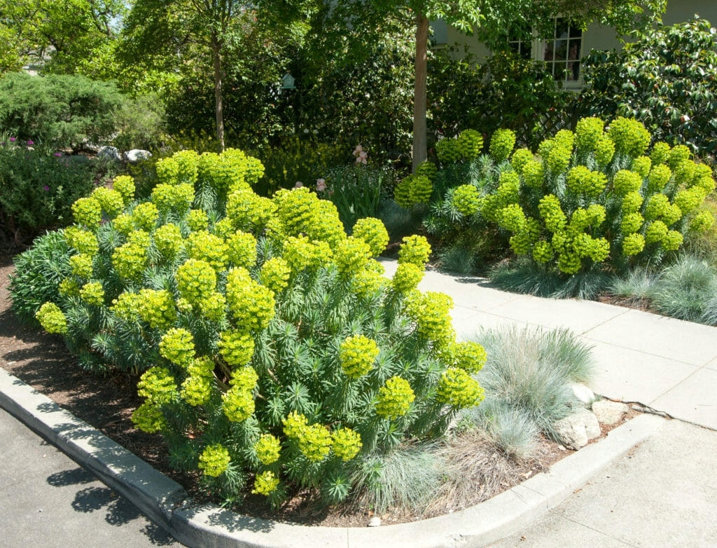 Wilczomlecz błękitnawy ‘Wulfenii’ to wieloletnia bylina o wzniesionym, krzaczastym pokroju i silnie rozgałęzionych pędach. Dorasta do około 70–100 cm wysokości i tworzy zwarte, kępiaste skupiska. Kwitnie w kwietniu i maju, wytwarzając limonkowe kwiatostany zebrane w baldachogrona.