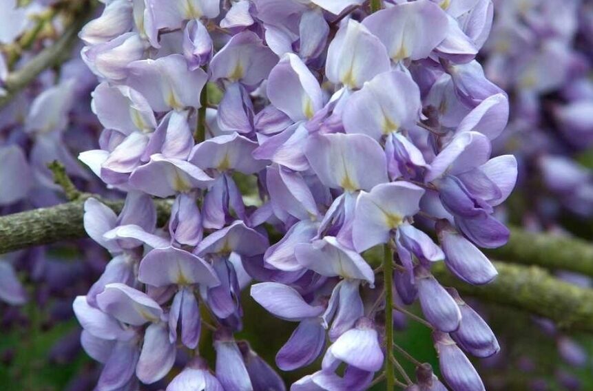 Odmiana wyróżnia się efektownymi, długimi gronami kwiatów w odcieniach lila i niebieskiego fioletu, osiągającymi nawet 40–80 cm długości. Kwiaty są pachnące i tworzą malownicze, romantyczne kaskady, szczególnie widowiskowe na pergolach i altanach. Dekoracyjne, pierzaste liście latem budują gęste zielone tło, a jesienią przebarwiają się na żółto, dodatkowo zwiększając atrakcyjność rośliny.
