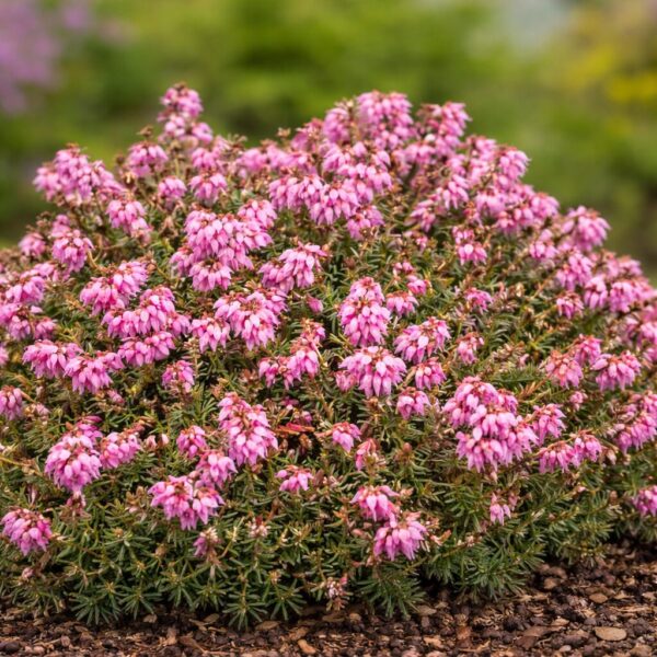 Wrzosiec ‘Winter Beauty’ to niska, zimozielona krzewinka o zwartym, kępiastym pokroju, dorastająca do 15–20 cm wysokości. Jest jedną z najwcześniej kwitnących odmian – obsypuje się kwiatami już od grudnia do marca. Kwiaty są intensywnie różowe, z wyraźnymi brązowymi pręcikami, bardzo dobrze widoczne na tle ciemnozielonych liści.