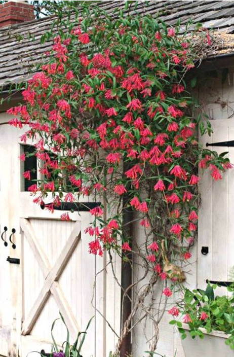 Jedyny gatunek wiecznie zielonego wiciokrzewu o pachnących kwiatach. Dorasta do wysokości 3-4 m. W sezonie jego pędy mogą się wydłużać o 1 m. To właśnie nimi roślina oplata się wokół podpór, nie można więc jej posadzić przy nagim murze. Do wspinania się potrzebuje kratki lub drążka. Liście rośliny są zimozielone, gładkie, podłużnie lancetowate, koloru ciemnozielonego. Kwitnie w czerwcu i lipcu. Kwiaty pojawiają się w kątach liści, są niewielkie i mają oryginalną purpurowo czekoladową barwę. Za dekoracyjne można również uznać fioletowe owoce dojrzewające późnym latem. Wymaga stanowisk zacisznych, osłoniętych przed wiatrem. Najlepiej słonecznych. Dobrze rośnie na żyznych, urodzajnych glebach. Nadaje się do ogrodów przydomowych, na konstrukcje ażurowe, pergole lub do prowadzenia przy ścianie. Można też uprawiać go w pojemnikach.